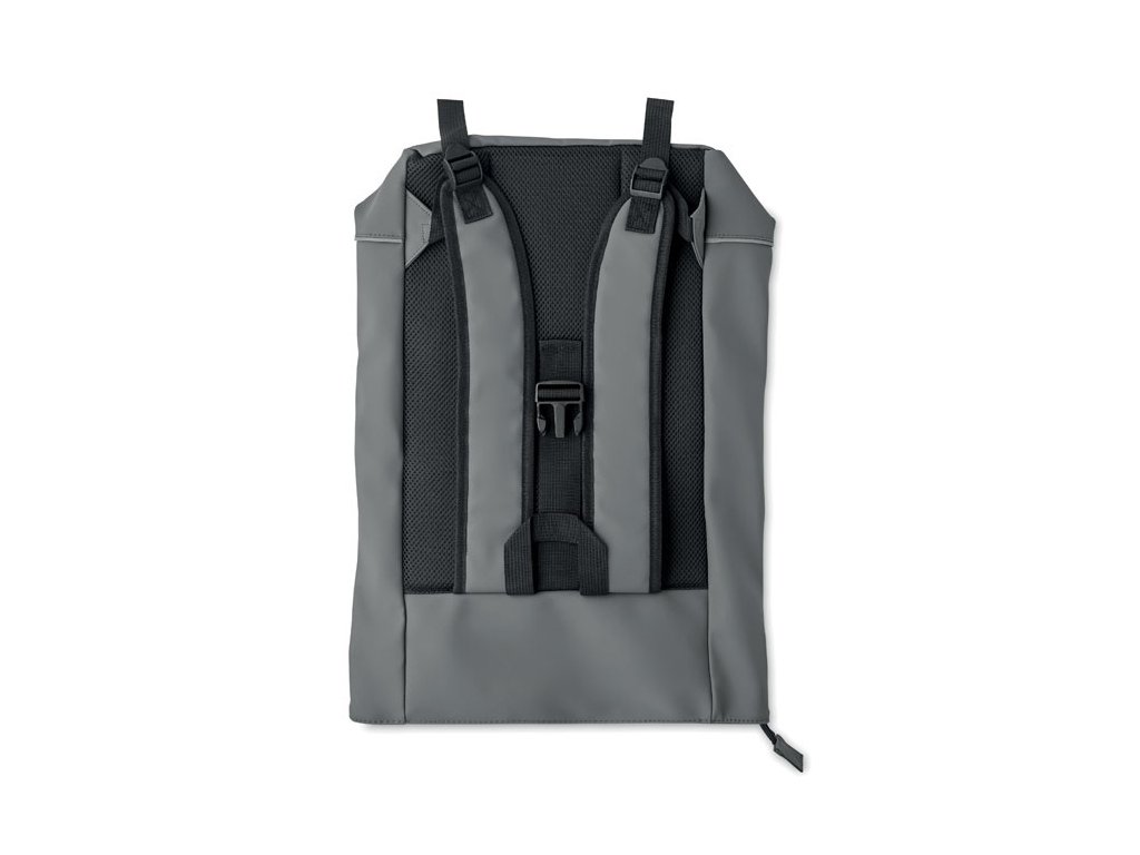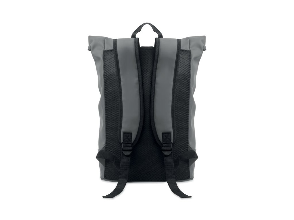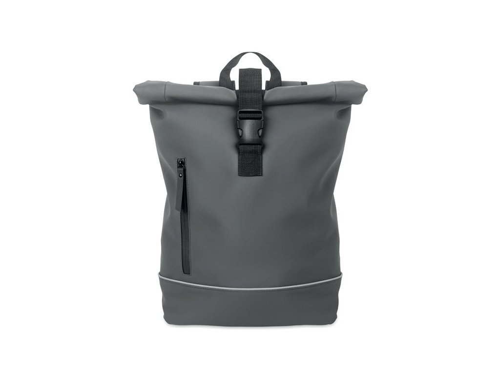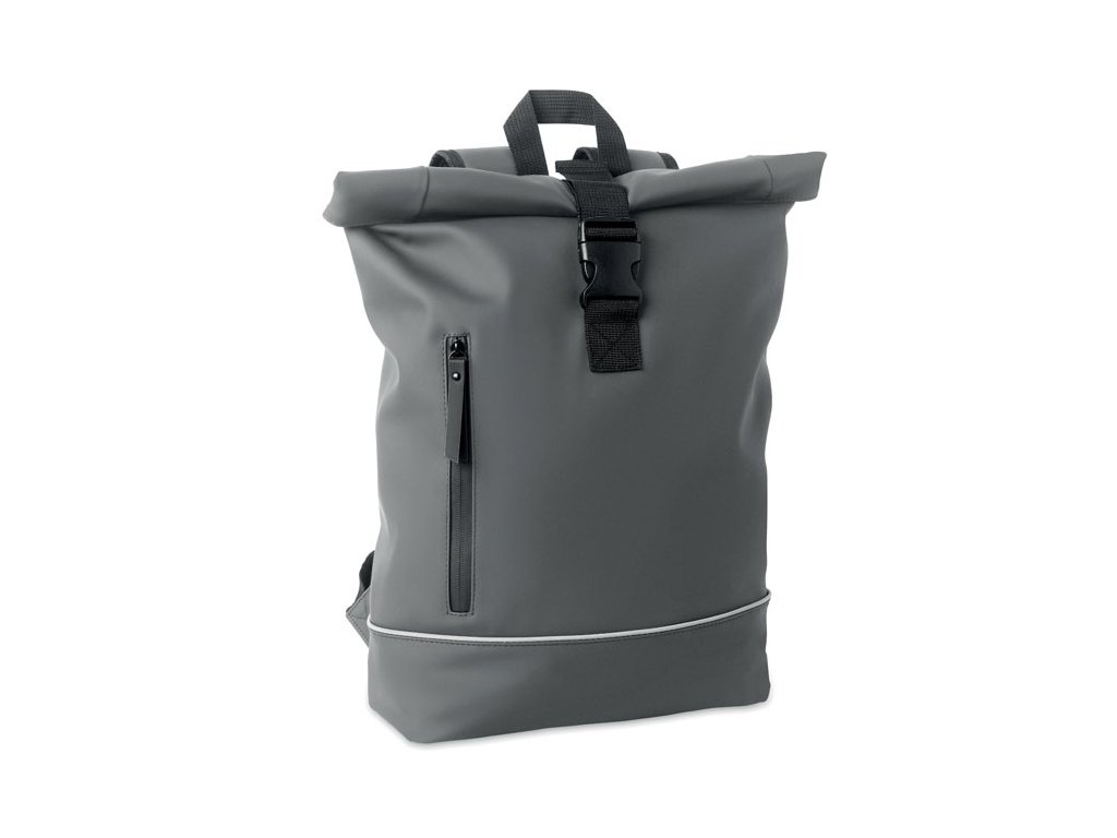 Rolovateľný batoh na 15-palcový notebook z mäkkého PU s vystuženým chrbtom a spodnou výstužou s reflexným pásikom. Vodotesné predné vrecko na zips. 210D RPET polyesterová podšívka.