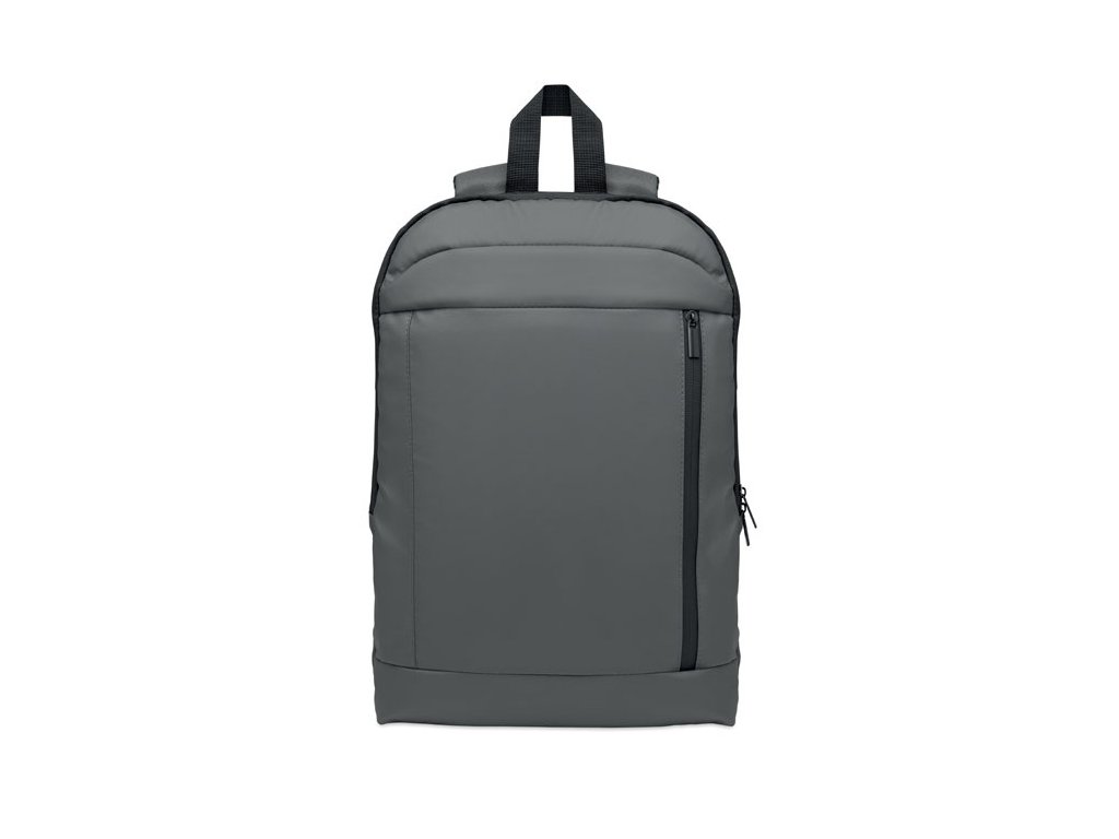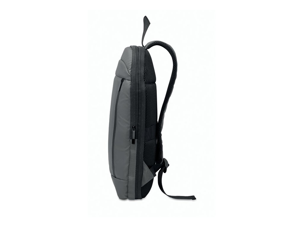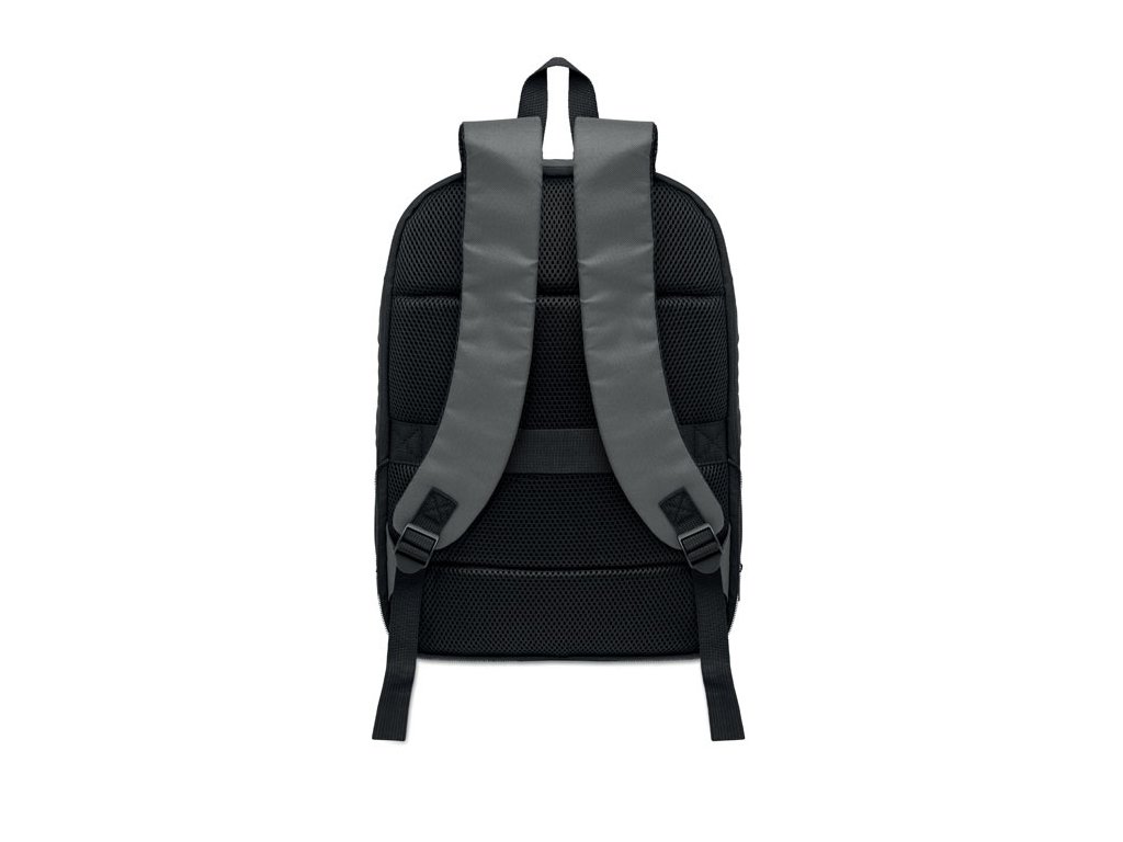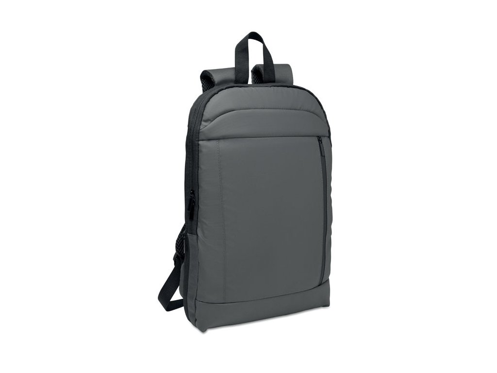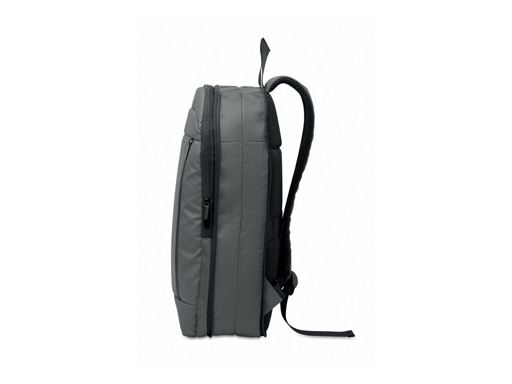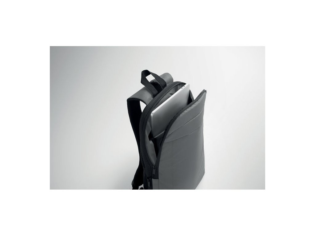 Rozšíriteľný 16-palcový počítačový batoh z 600D RPET polyesteru s PU záterom na prednej strane a podšívkou z RPET polyesteru. Skryté vrecko na zips a polstrovaná priehradka na notebook, predná priehradka, sieťovaný chrbát a popruh na kufor.