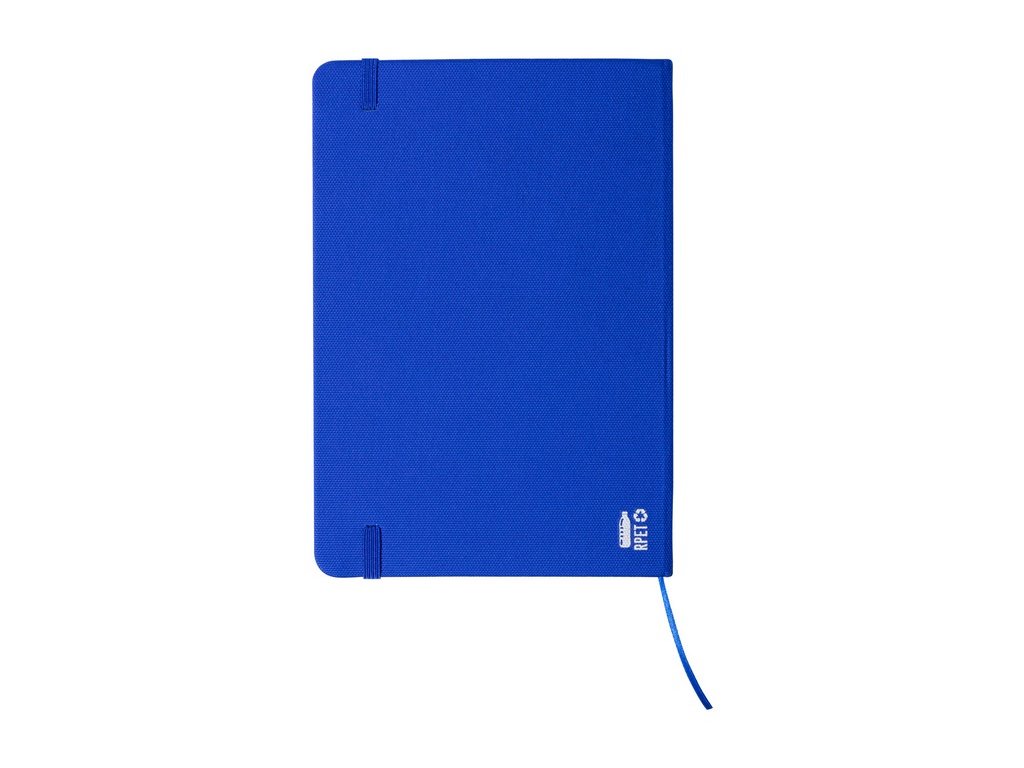 RPET blok A5 potiahnutý polyesterom s 80 linkovaným listami, záložkou a gumičkou.
