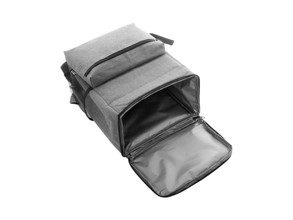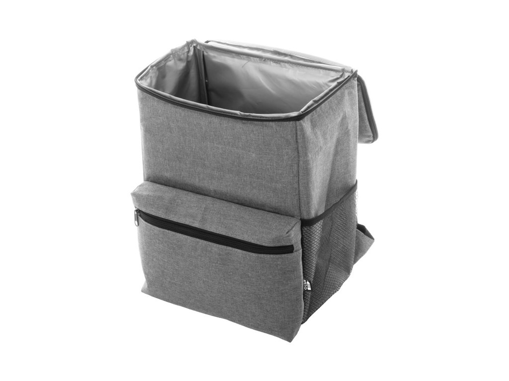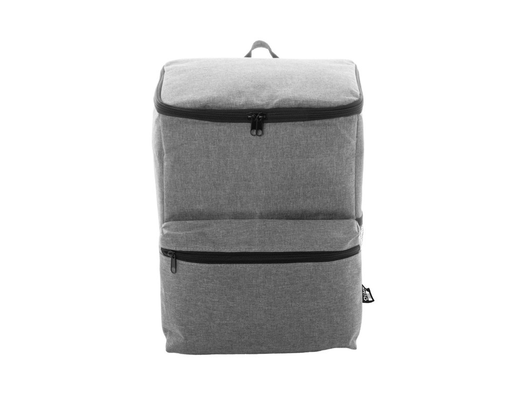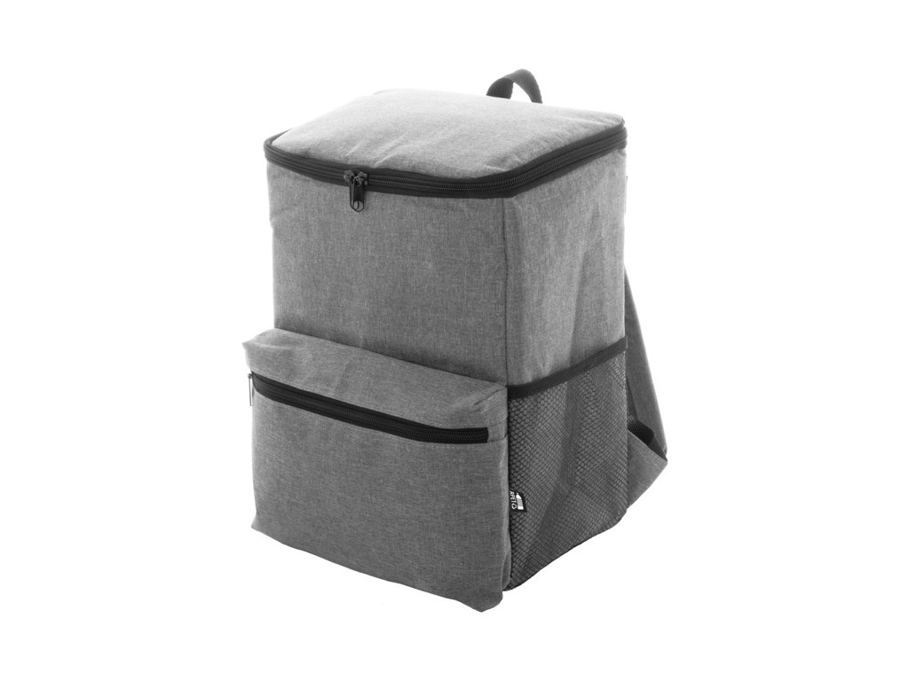 Chladiaci batoh RPET s hlavným vreckom na zips, predným vreckom a bočným sieťovaným vreckom. S PEVA výstelkou a výrazným štítkom RPET. Polyester 300D RPET.