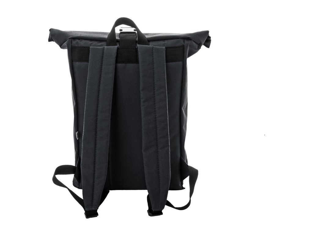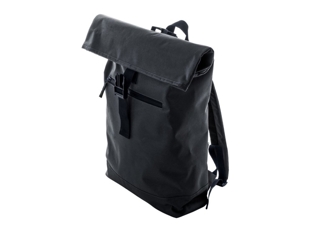 Rolovací batoh RPET so zapínaním na pracku, predné vrecko na zips, polstrovaná priehradka na notebook (15"), polstrovaný chrbát a ramenné popruhy. Polyester 600D RPET s výrazným štítkom RPET.