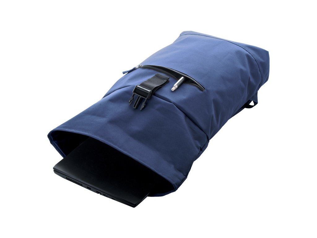 Rolovací batoh RPET so zapínaním na pracku, predné vrecko na zips, polstrovaná priehradka na notebook (15"), polstrovaný chrbát a ramenné popruhy. Polyester 600D RPET s výrazným štítkom RPET.