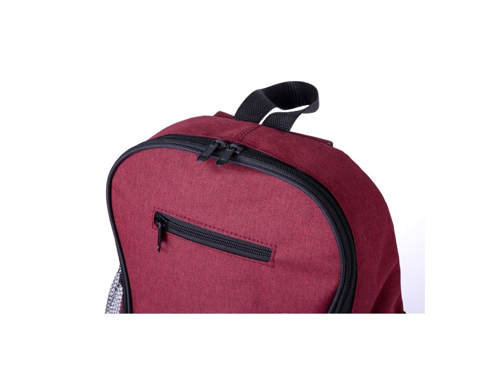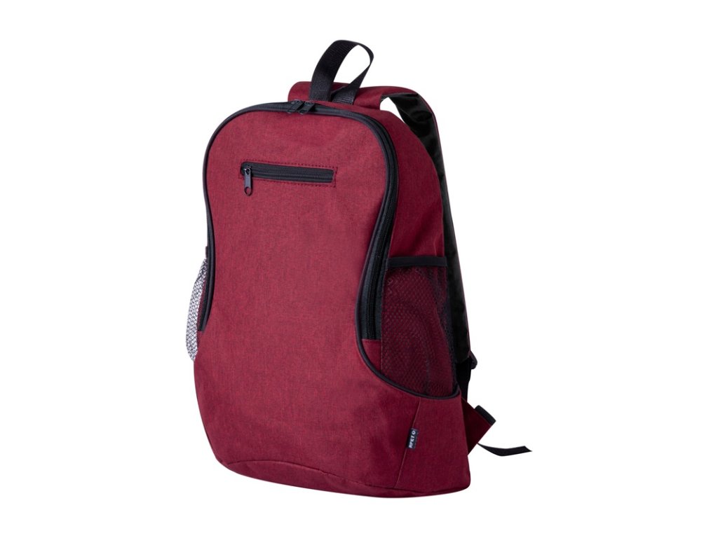 Batoh RPET s priehradkou na zips a predným vreckom, bočné sieťované vrecká, polstrovaný chrbát a ramenné popruhy. 300D RPET polyester s výrazným štítkom RPET.