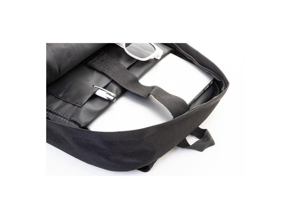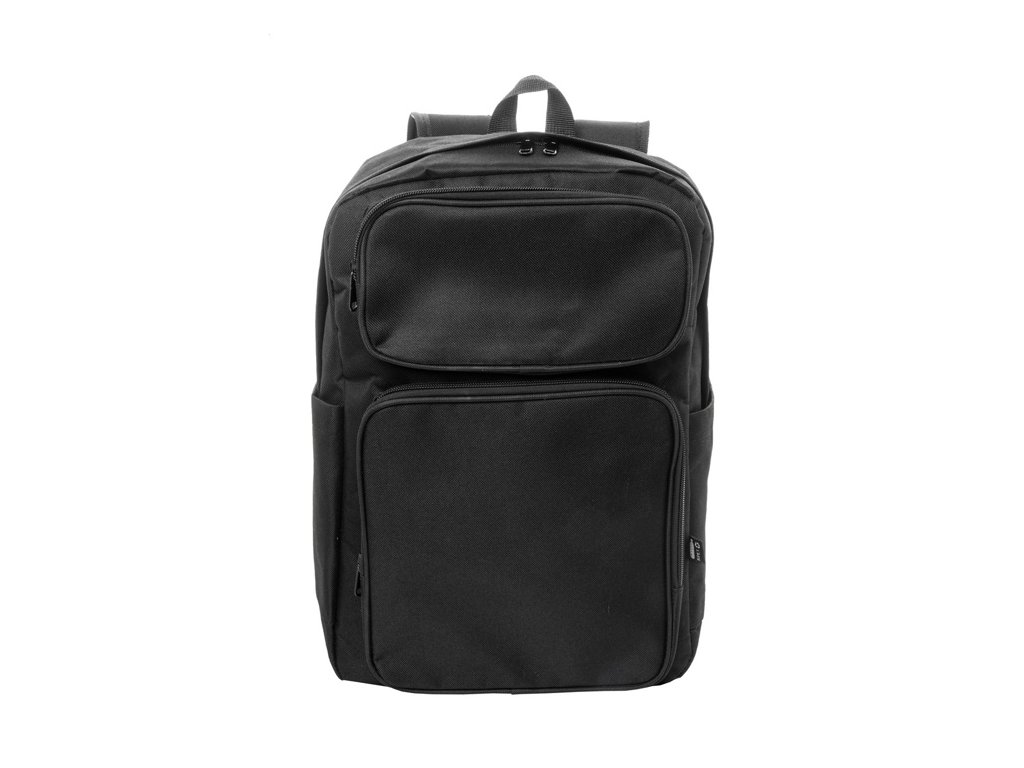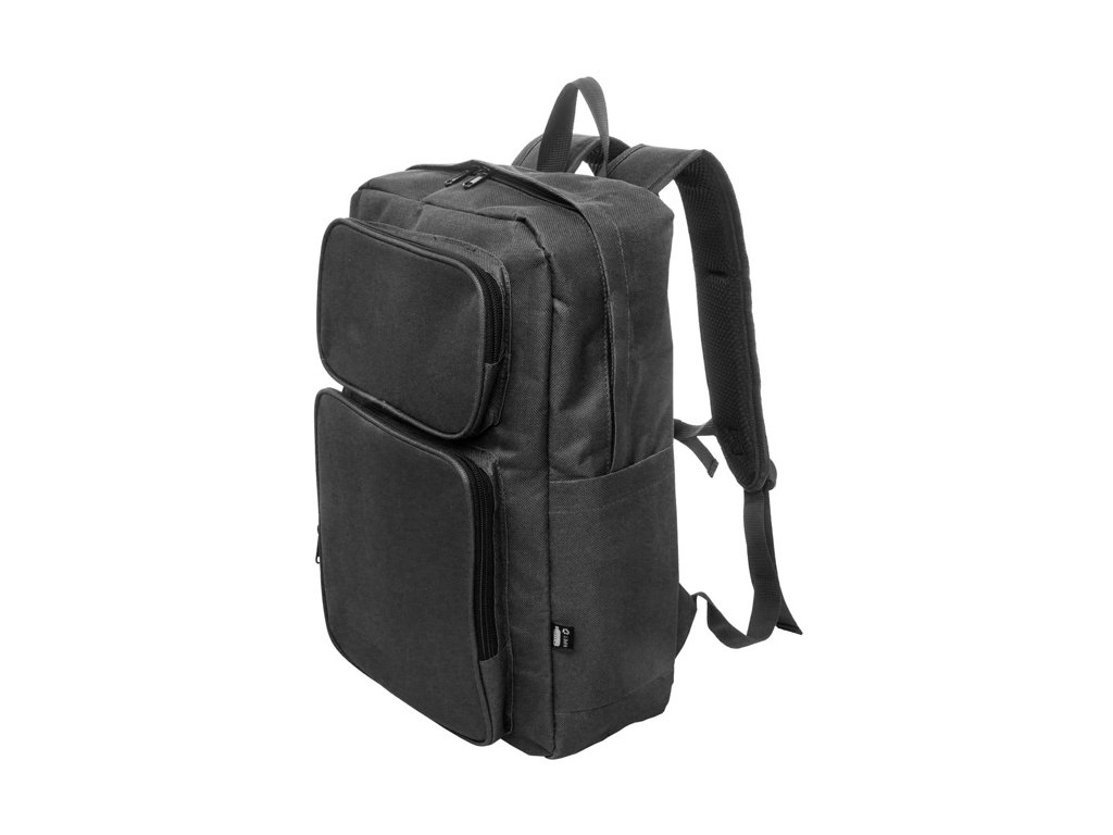 Batoh RPET s hlavným oddielom na zips, 2 prednými vreckami na zips, bočnými vreckami a polstrovanou priehradkou na notebook (15") a tabliet (10") S polstrovaným chrbtom a ramennými popruhmi. Polyester 600D RPET, s výrazným štítkom RPET.