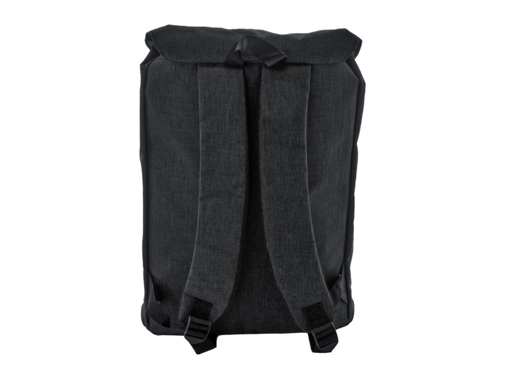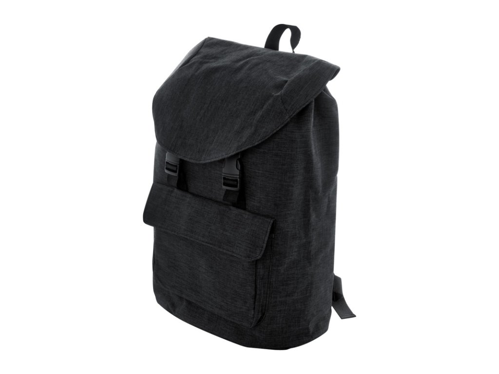 RPET batoh so zapínaním na pracku a šnúrku, predné vrecko na suchý zips, priehradka na notebook (15"), polstrovaný chrbát a ramenné popruhy. 300D RPET polyester s výrazným štítkom RPET.