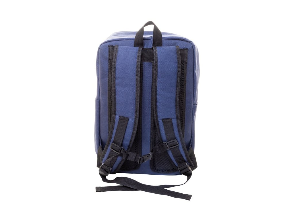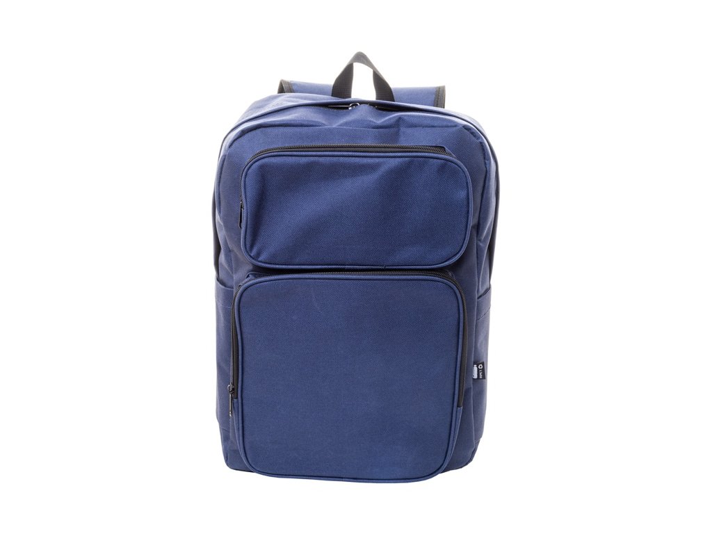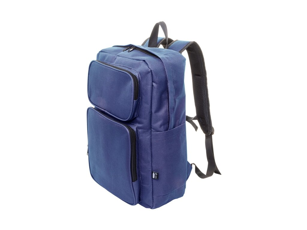 Batoh RPET s hlavným oddielom na zips, 2 prednými vreckami na zips, bočnými vreckami a polstrovanou priehradkou na notebook (15") a tabliet (10") S polstrovaným chrbtom a ramennými popruhmi. Polyester 600D RPET, s výrazným štítkom RPET.