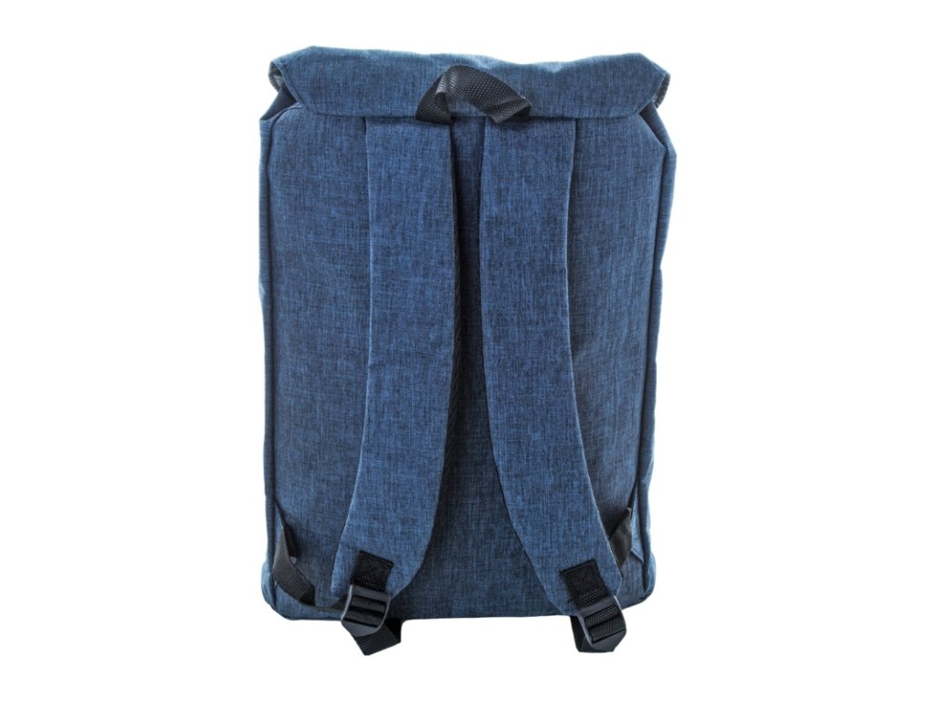 RPET batoh so zapínaním na pracku a šnúrku, predné vrecko na suchý zips, priehradka na notebook (15"), polstrovaný chrbát a ramenné popruhy. 300D RPET polyester s výrazným štítkom RPET.