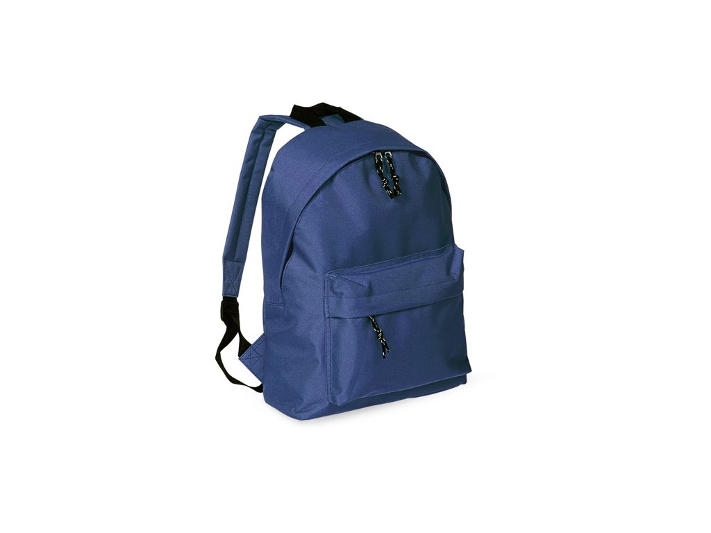 Ruksak s jedným predným vreckom a vystuženou chrbtovou časťou a ramennými popruhmi. Polyester 600D.