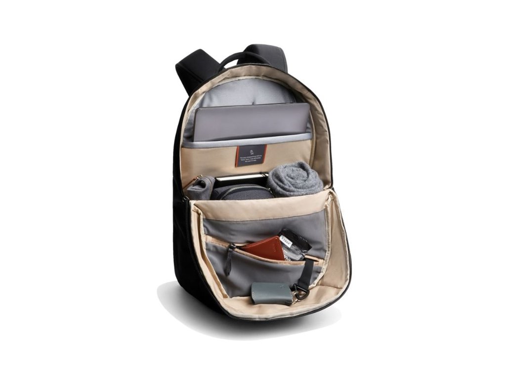 Vnútri polstrované puzdro na 16" notebook. Vnútorné sieťované vrecko na zips, klip na kľúče a sieťované vrecko na slnečné okuliare. Chrbát plecniaka a popruhy sú tvarované a vypolstrované.