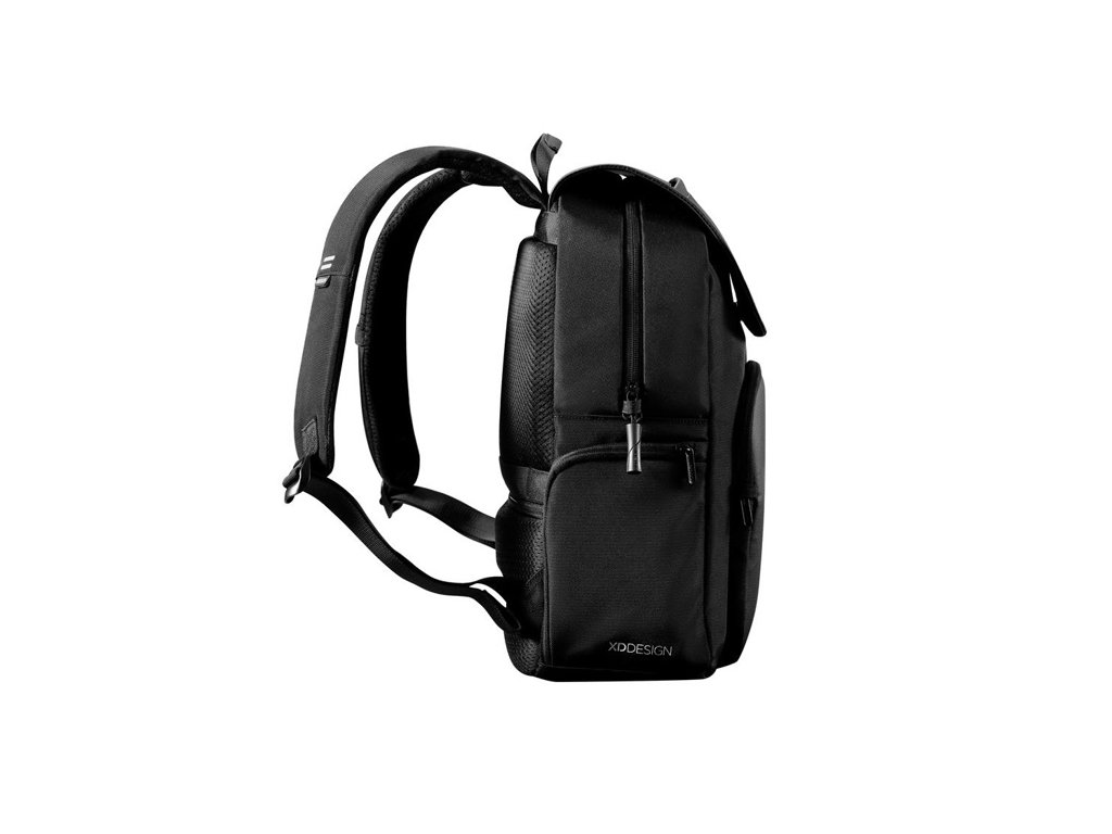 Batoh vyrobený z 1200D recyklovného polyesteru s vodeodolnou úpravou v kombinácii s textúrovaným PU. Bezpečie obsahu zaisťujú RFID vrecká, nedobytné flap-top prevedenie s prackou Fidlock a twist-lock zipsy. Samostatný polstrovaný oddiel pre 16" notebook.