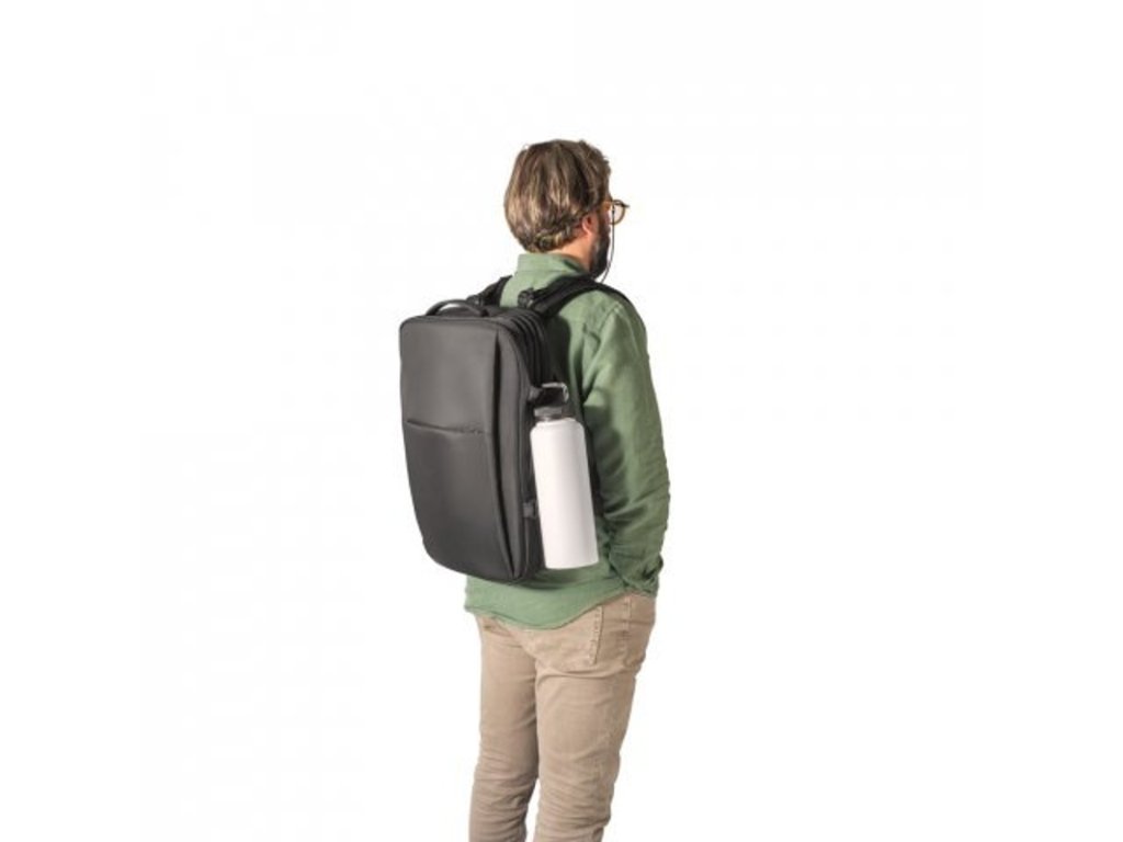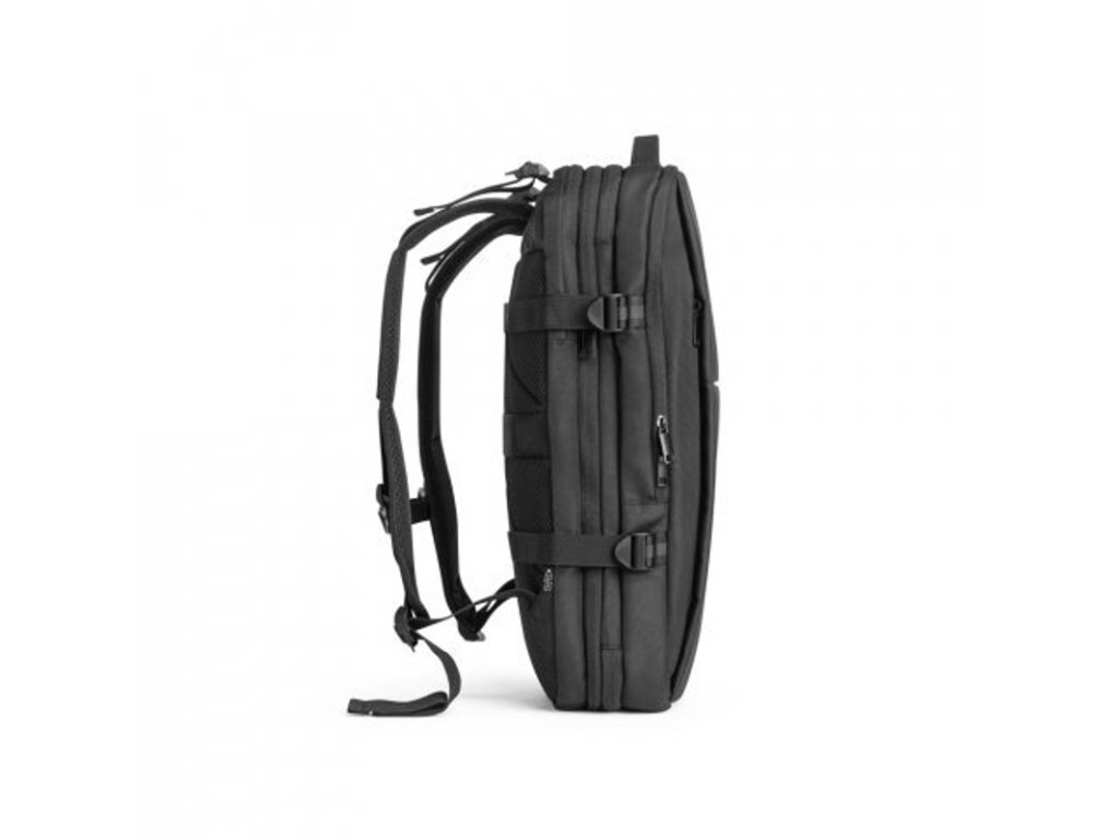Priehradka na notebook do 17,3" tablet do 10,1", priehradks na oblečenie s celoskrytým zipsom a priehradka s podšitým PEVA. 2 predné vrecká a 1 skryté vrecko na fľašu. Plne prispôsobiteľné popruhy a popruh na kufor. Kapacita až 29 l.