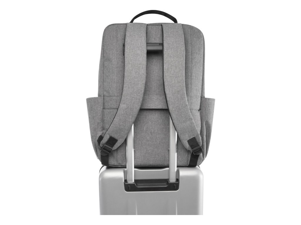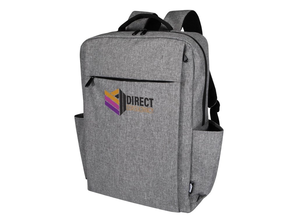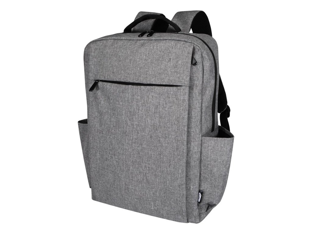 Batoh Libra z RPET s certifikáciou GRS a RPET podšívky a obsahuje 15" priehradku na notebook, polstrované vrecko na tablet, organizačné vrecká, vrecká na vonkajšej strane, polstrované a nastaviteľné ramenné popruhy a popruh na kufor.