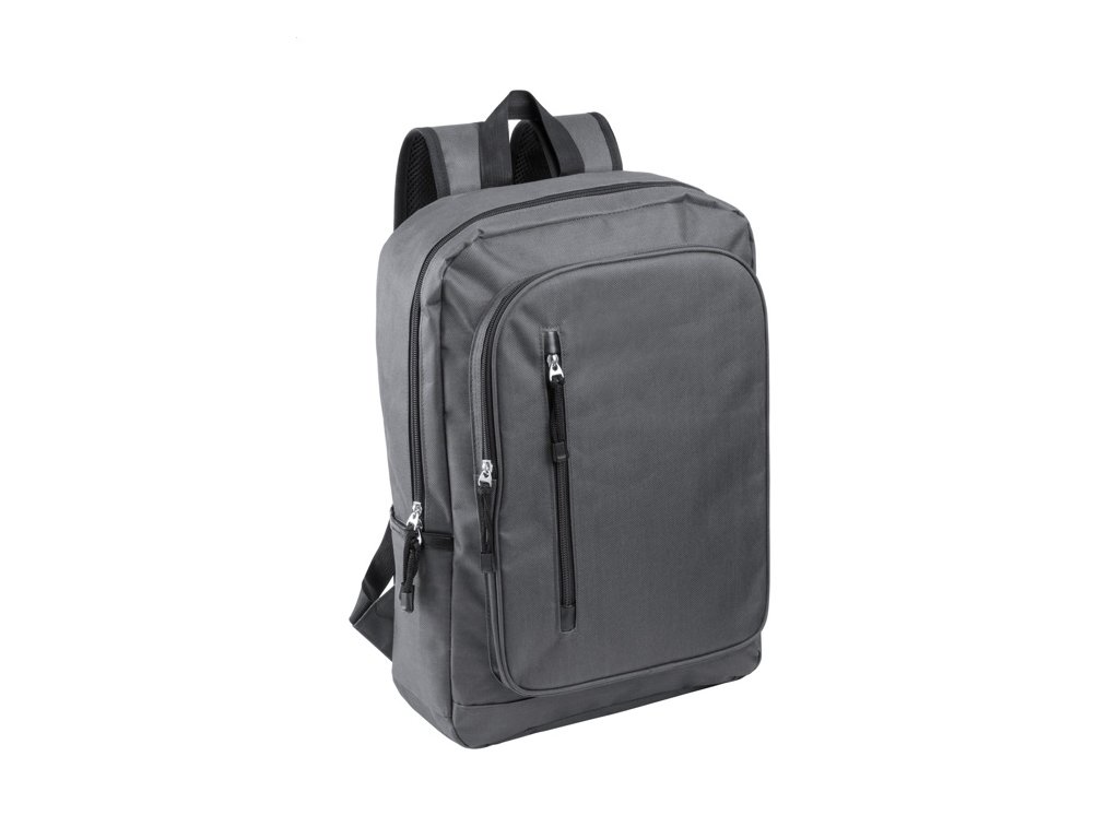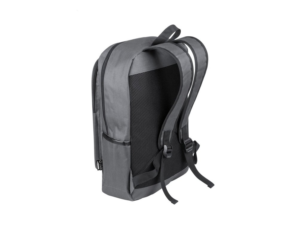 Batoh RPET s hlavným oddielom na zips, 2 prednými vreckami na zips, bočnými vreckami a polstrovanou priehradkou na notebook (15"). S polstrovaným chrbtom a ramennými popruhmi. Polyester 600D RPET, s výrazným štítkom RPET.