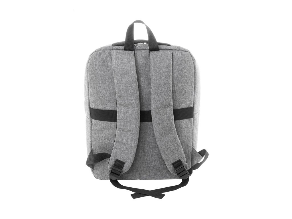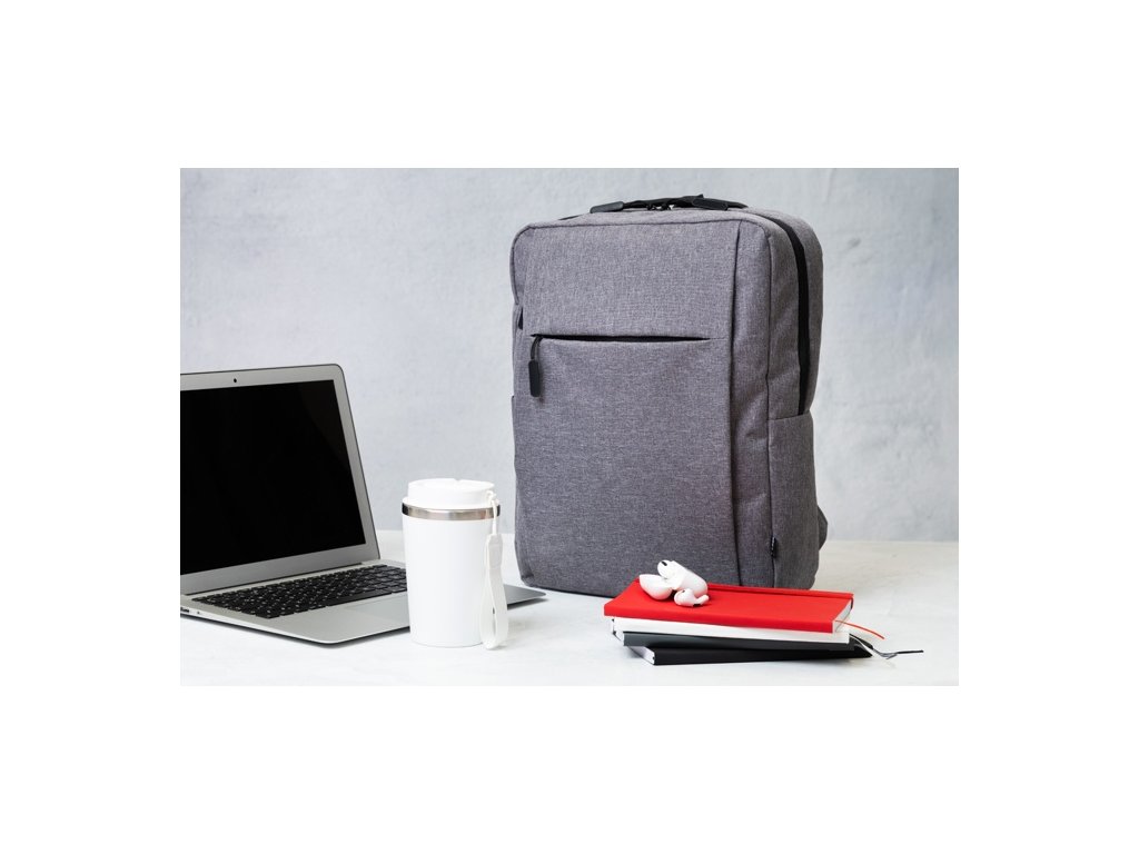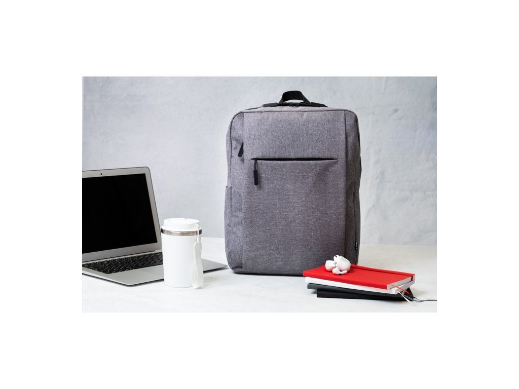 Batoh RPET s hlavným oddielom na zips, 2 vreckami na zips, bočným vreckom a polstrovanou priehradkou na notebook (15"). S popruhom na vozík, polstrovaným chrbtom a ramennými popruhmi. Polyester 600D RPET, s výrazným štítkom RPET.