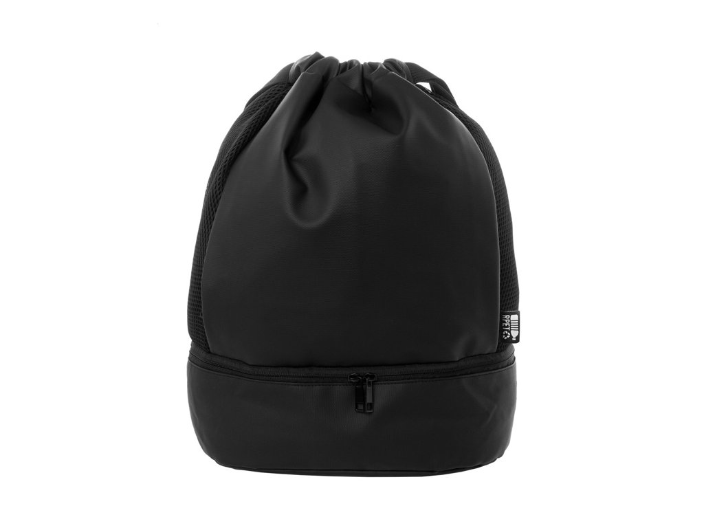 Prémiový vak so sťahovacou šnúrkou z RPET s priehradkou na topánky na zips, bočnými vložkami zo sieťoviny a širokými popruhmi. Polyester 600D RPET potiahnutý PU s výrazným štítkom RPET.