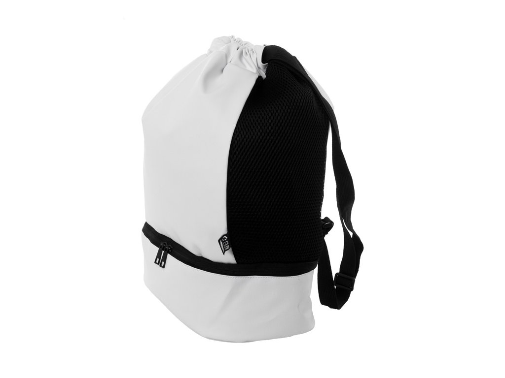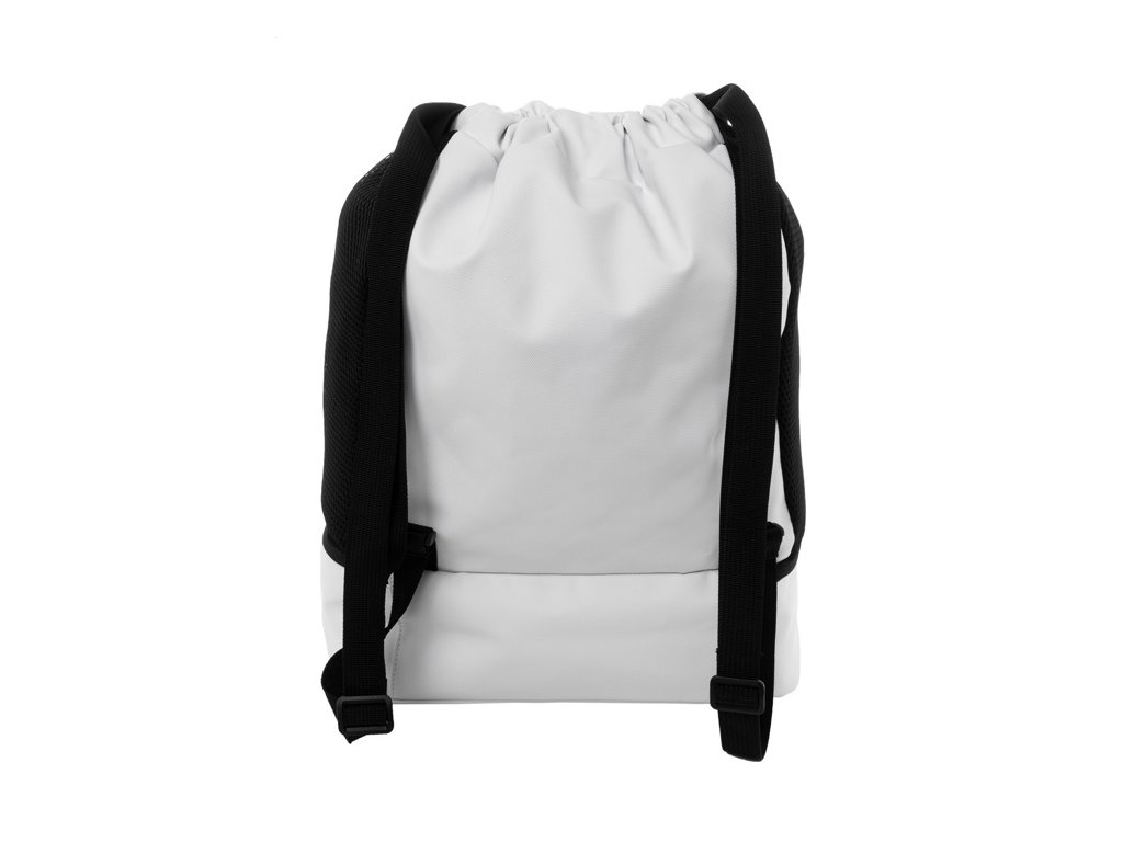 Prémiový vak so sťahovacou šnúrkou z RPET s priehradkou na topánky na zips, bočnými vložkami zo sieťoviny a širokými popruhmi. Polyester 600D RPET potiahnutý PU s výrazným štítkom RPET.