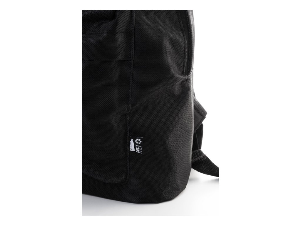 RPET batoh s hlavným priestorom na zips, predným vreckom na zips, polstrovaným chrbtom a ramennými popruhmi. Polyester 600D RPET, s výrazným štítkom RPET.