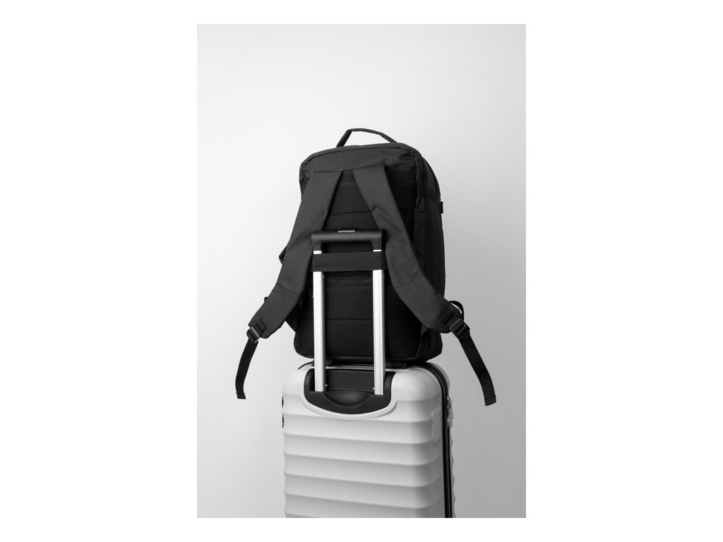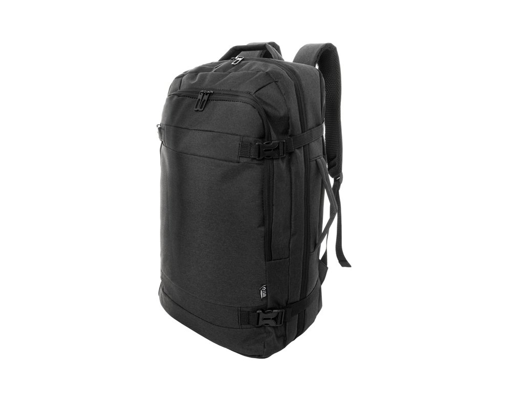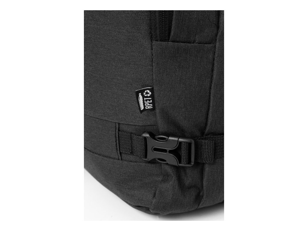 Dvojfunkčný RPET batoh a taška na dokumenty s 2 priehradkami na zips, predným vreckom na zips a polstrovanou priehradkou na notebook (15"). S vreckom proti krádeži, popruhom na vozík, polstrovaným chrbtom a ramennými popruhmi.