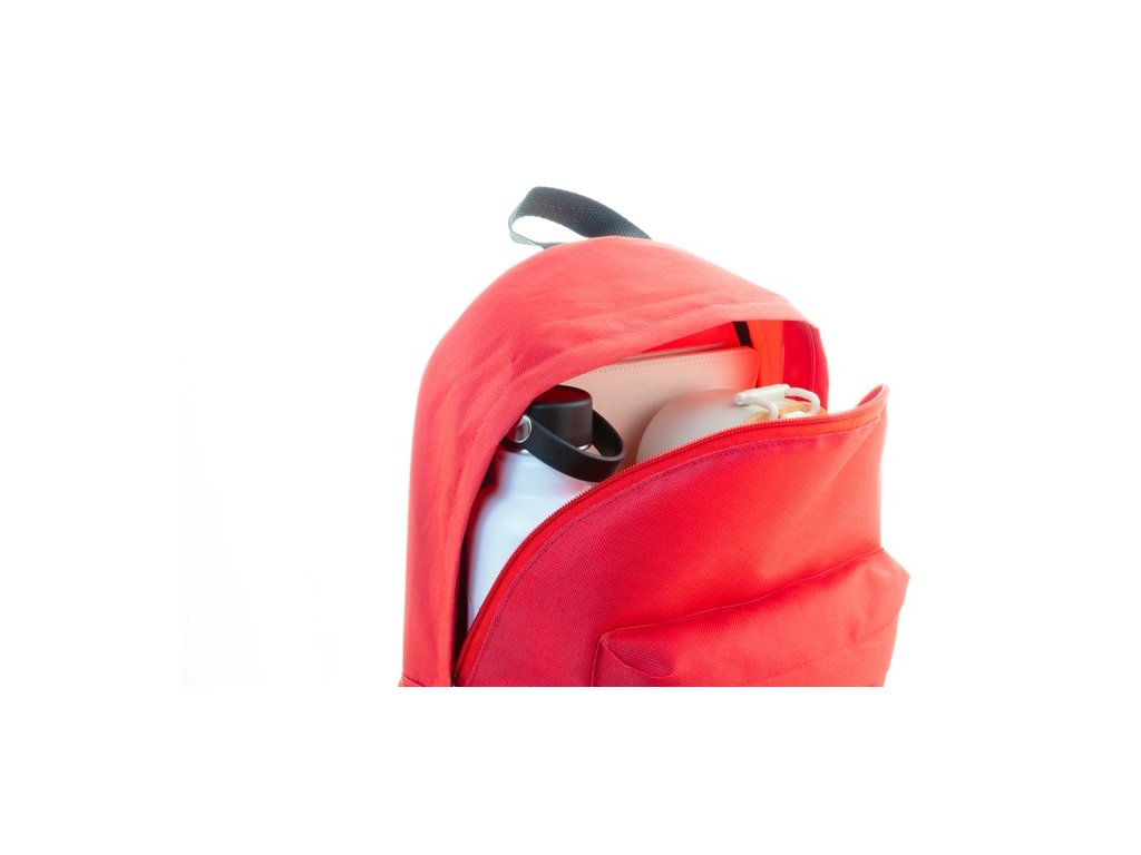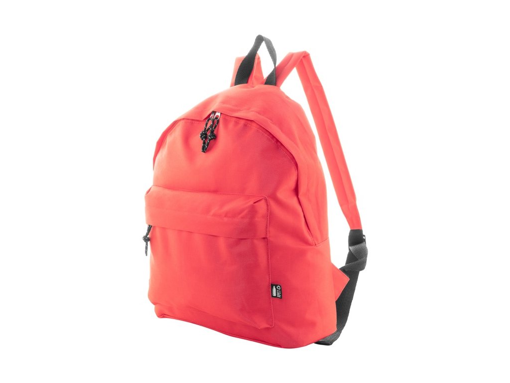 RPET batoh s hlavným priestorom na zips, predným vreckom na zips, polstrovaným chrbtom a ramennými popruhmi. Polyester 600D RPET, s výrazným štítkom RPET.