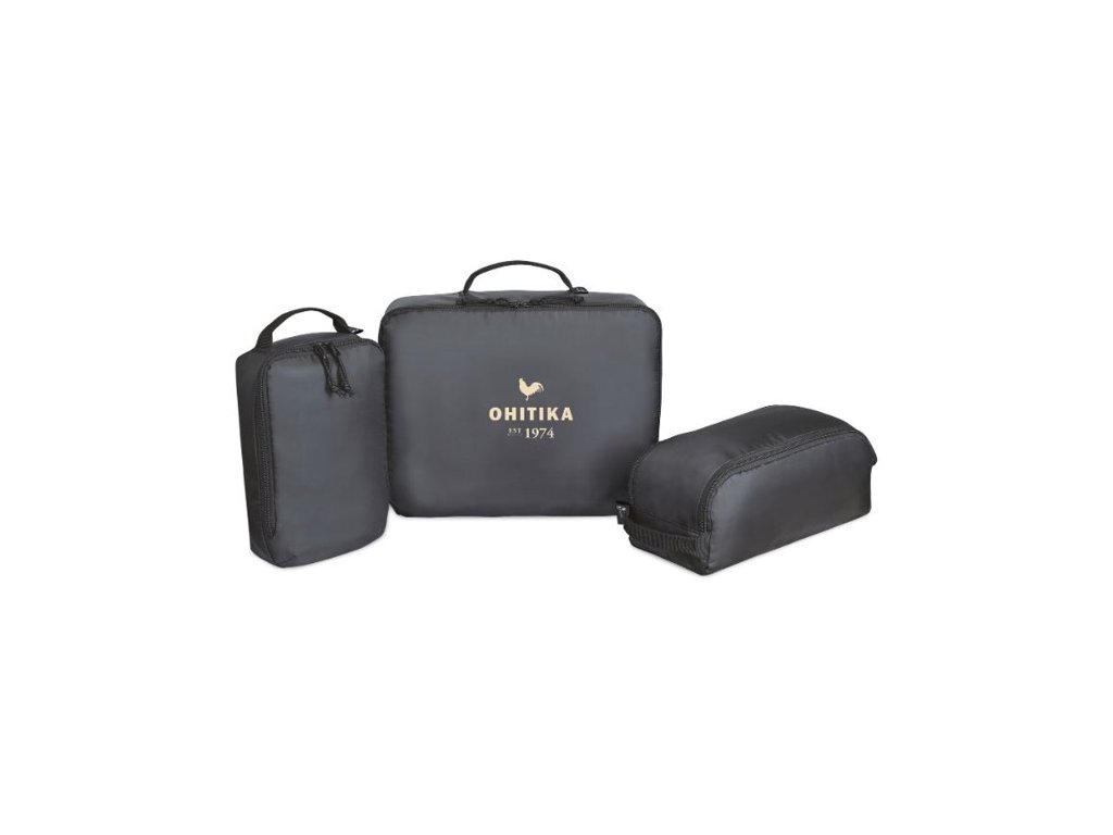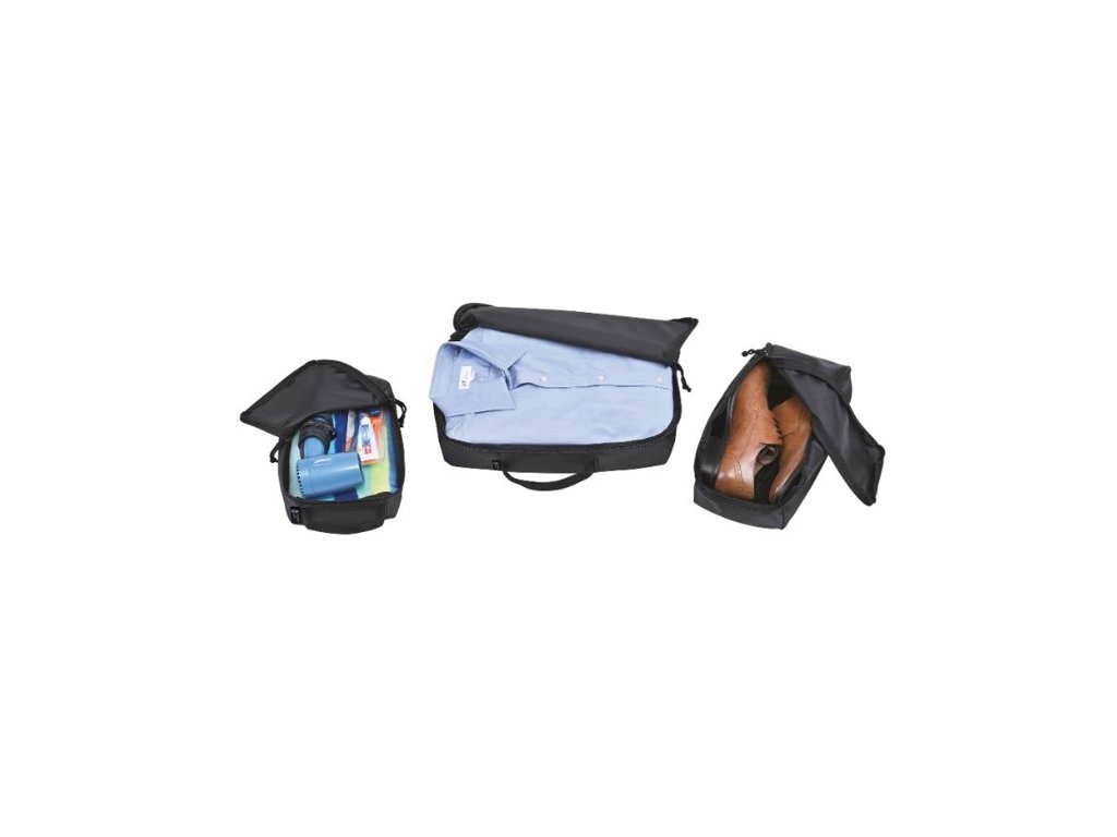 Cestovné organizéry z recyklovaných PET fliaš. Obsahuje 3 rôzne veľké organizéry s praktickým horným madlom pre ľahké prenášanie. Pre úsporu miesta je možné ich zložiť do seba. Veľký 38 x 30,5 x 9 cm, stredný 31,5 x 14 x 15 cm, malý 17 x 28 x 6,5 cm.