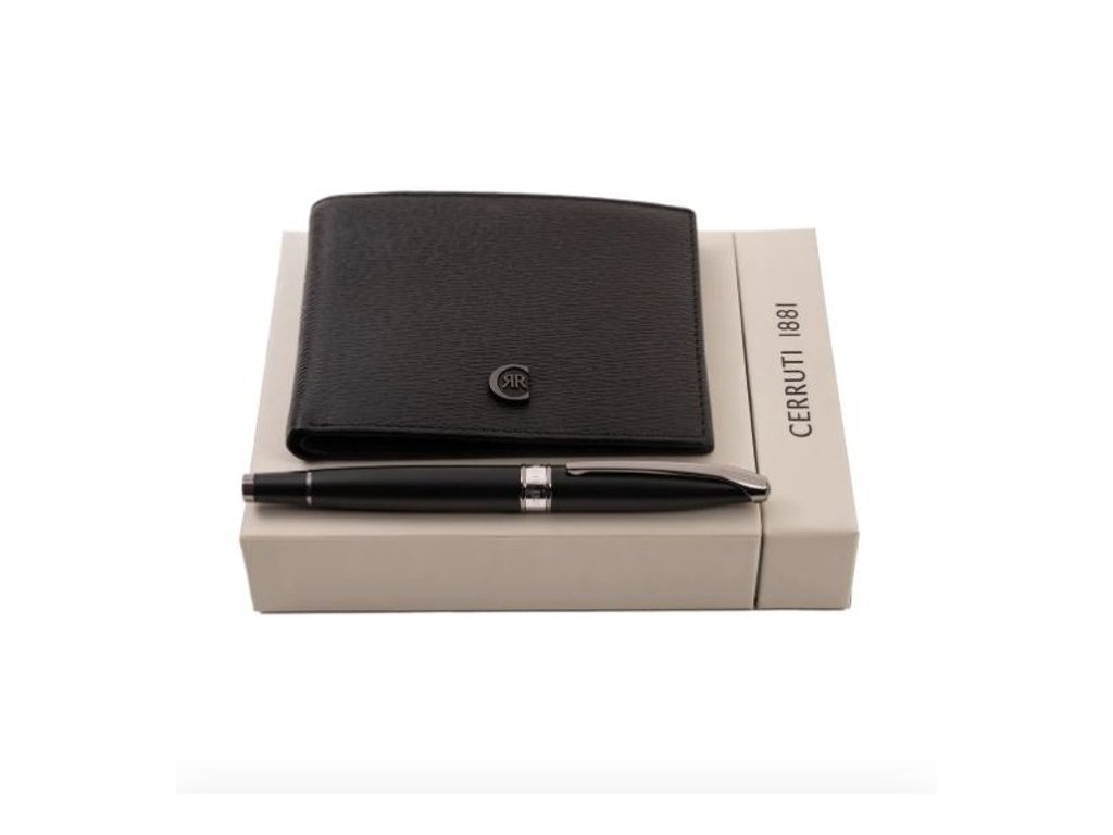 Pánska sada v darčekovom balení obsahuje roller (čierna náplň) a peňaženku s priečinkom na karty, aj mince.