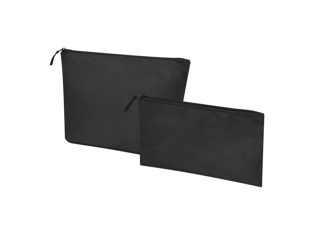 Súprava 2 toaletných taštičiek vyrobených z recyklovaného polyesteru s certifikáciou GRS. Sada obsahuje jednu veľkú a jednu malú tašku na prehľadné uloženie vecí. Ľahké, odolné a ľahko všetko zbalíte. Veľká taška má rozmery 32 × 21 cm, malý 23 × 13 cm.
