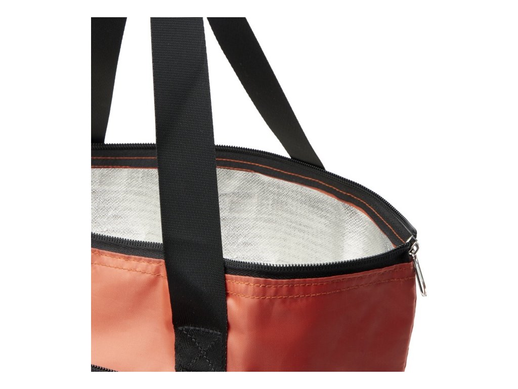 Túto odolnú chladiacu tašku je možné zložiť do kompaktného puzdra s pútkom. Má hlavnú priehradku na zips s hliníkovou fóliou, predné otvorené vrecko a dlhé uši z kvalitného hladkého popruhového materiálu.Vyrobené z RPET bez obsahu PVC. Objem: 15 litrov.