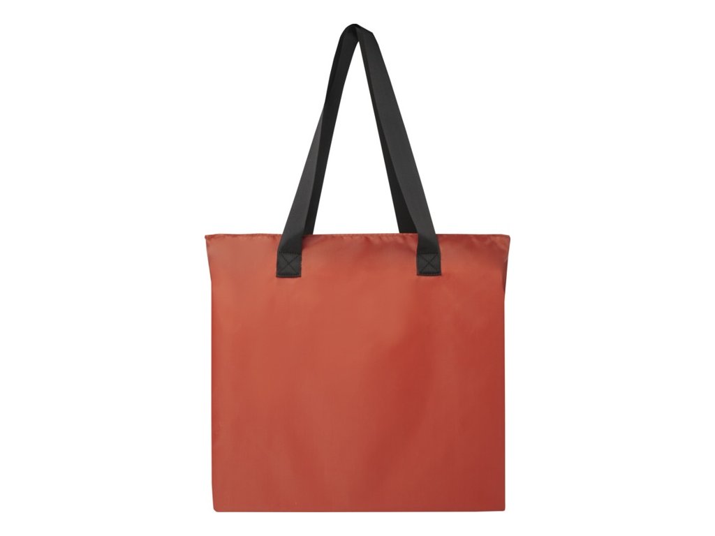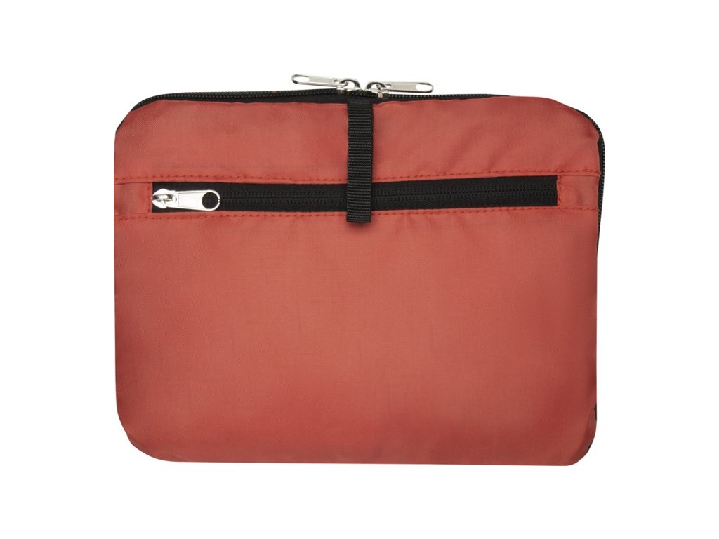 Túto ľahkú tašku je možné zložiť do kompaktného puzdra s pútkom. Má hlavnú priestrannú priehradku na zips, predné vrecko na zips a dve dlhé uši z kvalitného hladkého popruhového materiálu. Vyrobené z RPET bez obsahu PVC. Objem: 16 litrov.