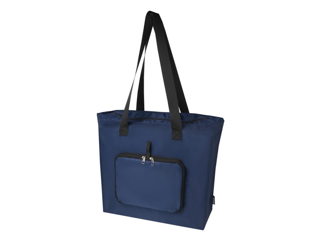 Túto ľahkú tašku je možné zložiť do kompaktného puzdra s pútkom. Má hlavnú priestrannú priehradku na zips, predné vrecko na zips a dve dlhé uši z kvalitného hladkého popruhového materiálu. Vyrobené z RPET bez obsahu PVC. Objem: 16 litrov.