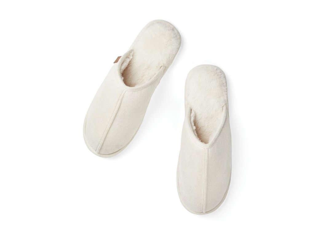 Šľapky s príjemnou plyšovou vnútornou časťou a elegantnou semišovou vonkajšou časťou. Pevná polstrovaná podrážka ponúka mimoriadny komfort. Dostupné v dvoch veľkostiach: S/M (EUR 36-40) a L/XL (EUR 41-45).