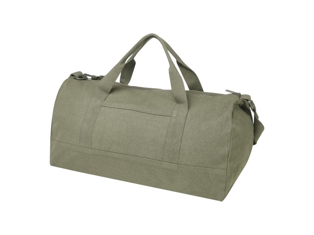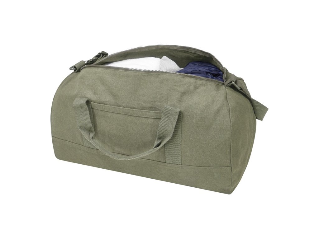 Taška z recyklovanej bavlny 500 g/m2 a RPET má priestrannú hlavnú priehradku a malé predné vrecko. Tašku je možné nosiť za 2 krátke uši alebo za odnímateľný ramenný popruh. Obsahuje recyklované vlákna Cyclo® a indikátor Aware™. Objem: 50 litrov.
