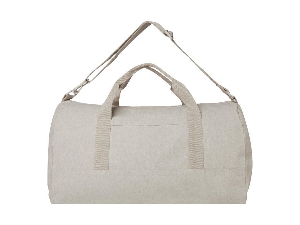 Taška z recyklovanej bavlny 500 g/m2 a RPET má priestrannú hlavnú priehradku a malé predné vrecko. Tašku je možné nosiť za 2 krátke uši alebo za odnímateľný ramenný popruh. Obsahuje recyklované vlákna Cyclo® a indikátor Aware™. Objem: 50 litrov.