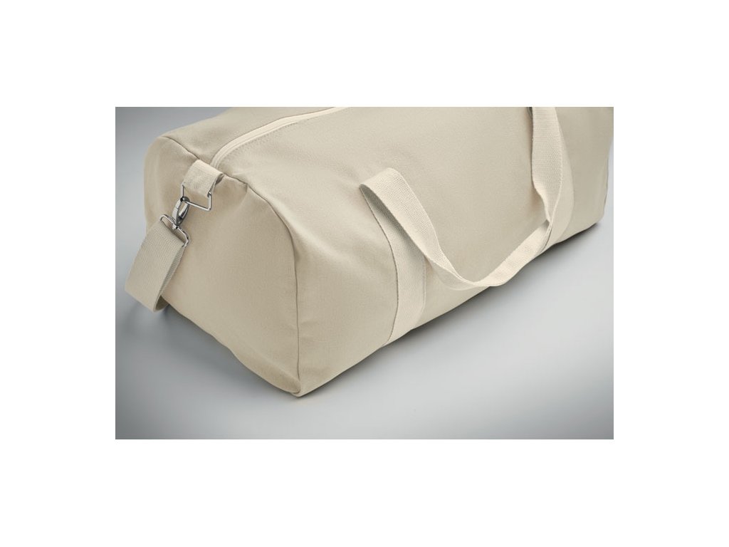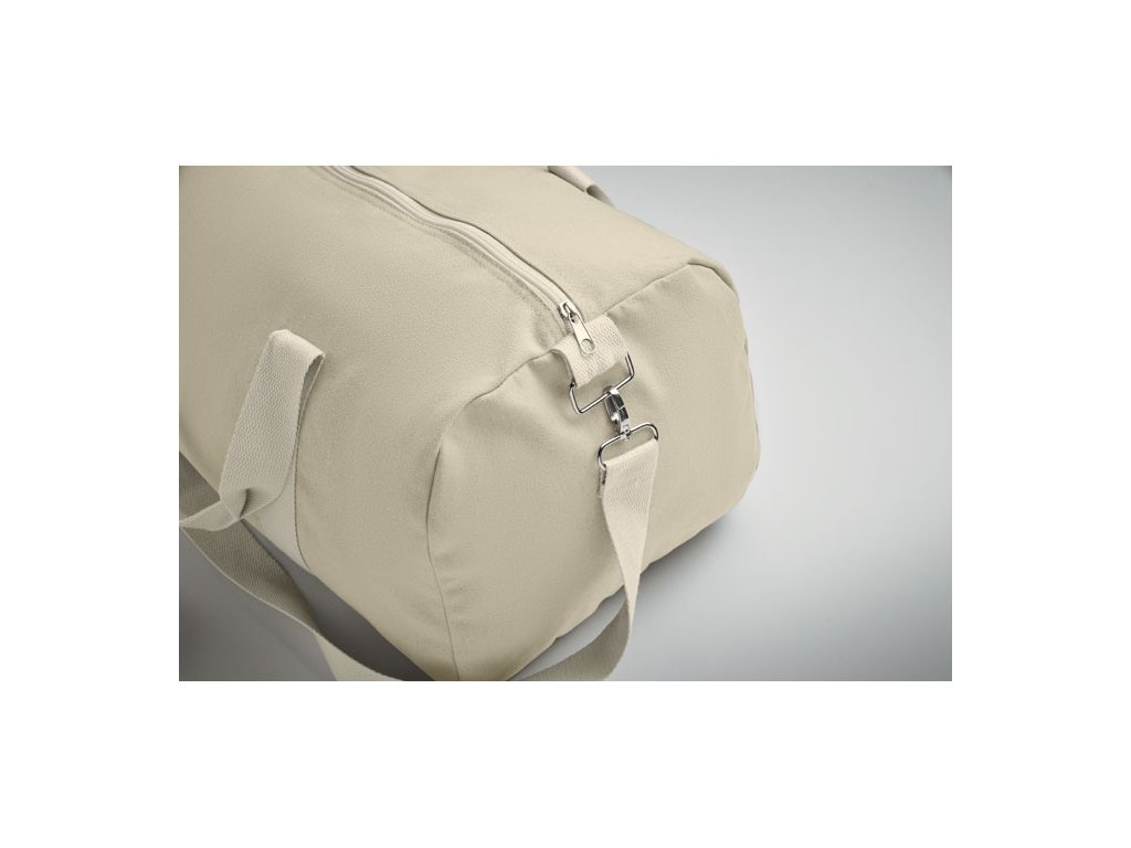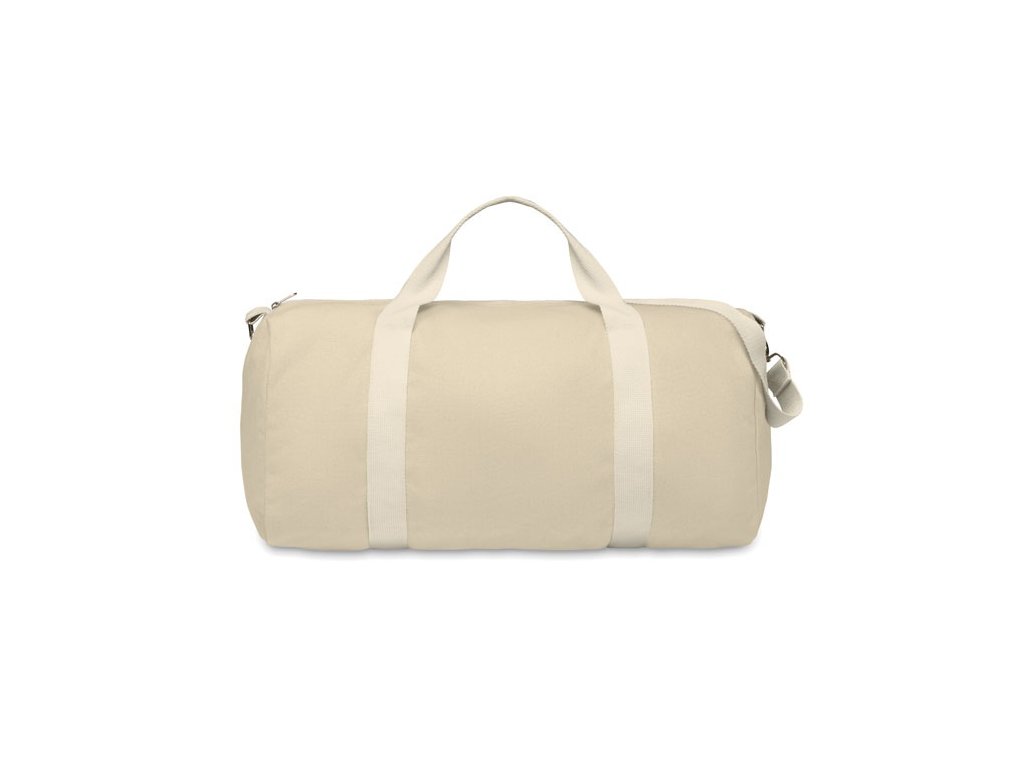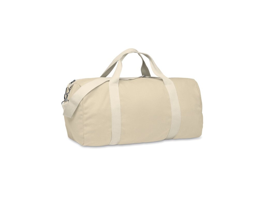 Taška z recyklovaných materiálov (60 % recyklovaná bavlna, 40 % recyklovaný polyester) s gramážou 320 g/m2 s rúčkou z prírodnej bavlny a nastaviteľným a odnímateľným ramenným popruhom.