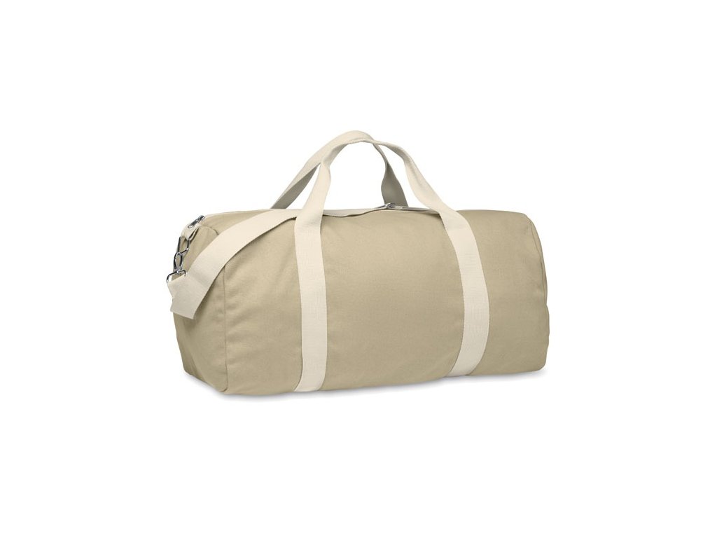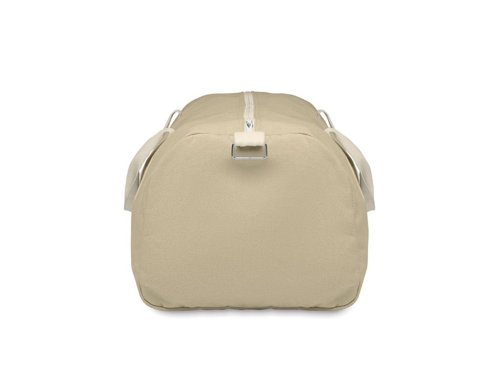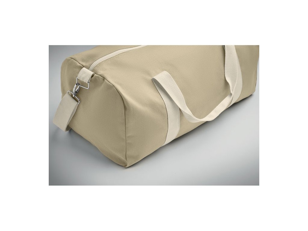 Taška z recyklovaných materiálov (60 % recyklovaná bavlna, 40 % recyklovaný polyester) s gramážou 320 g/m2 s rúčkou z prírodnej bavlny a nastaviteľným a odnímateľným ramenným popruhom.