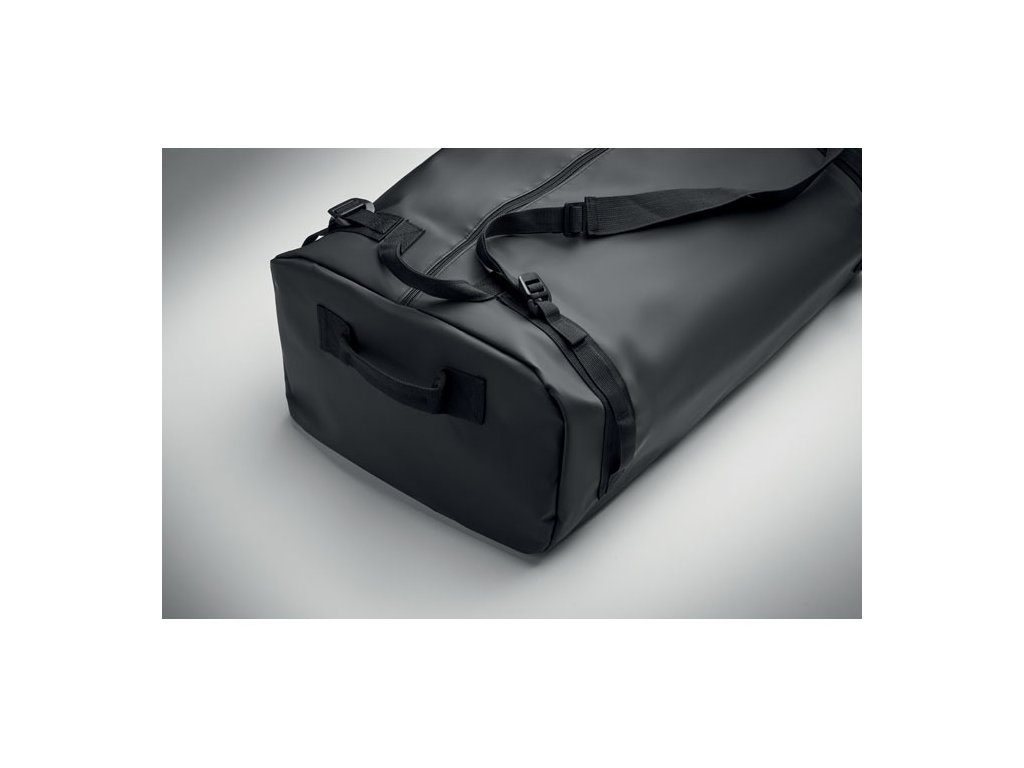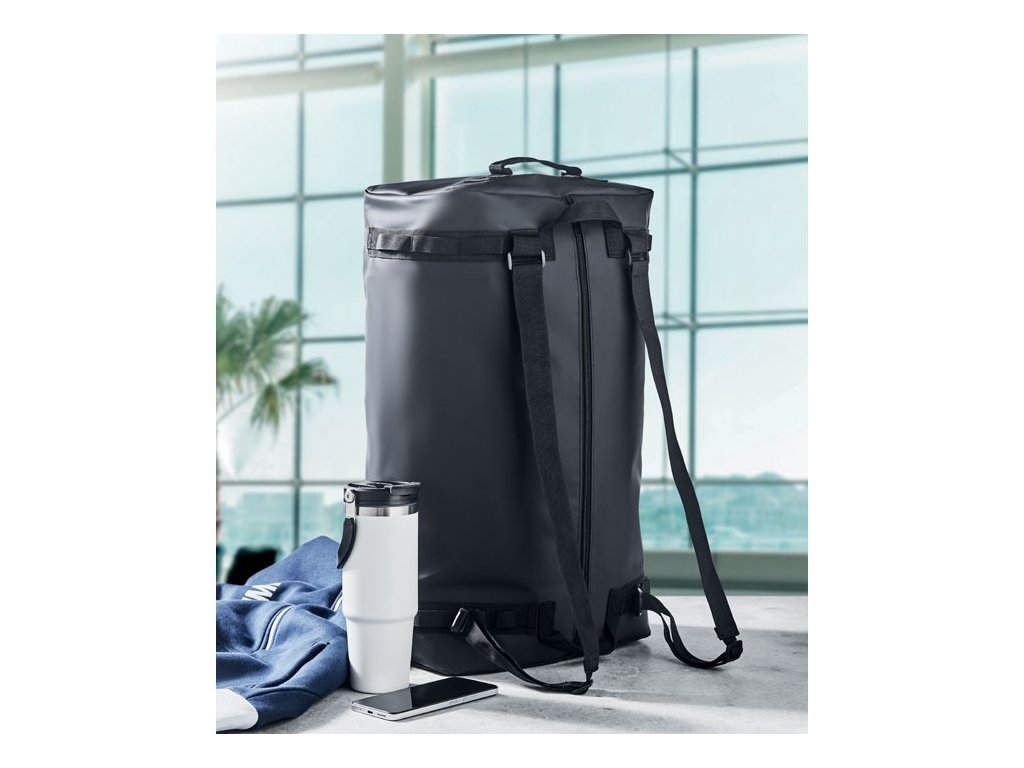 Veľká športová alebo cestovná taška, ktorú možno použiť aj ako batoh z tarpaulinu 50C s vnútorným priestorom na zips. Má odnímateľný a nastaviteľný ramenný popruh a podšívku RPET.