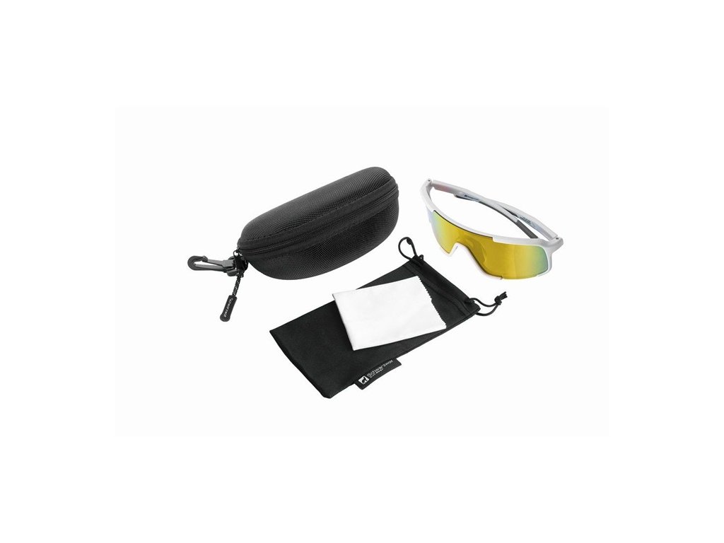 UV ochrana 400. Polarizované športové okuliare eliminujú nepríjemné odlesky a zlepšujú viditeľnosť detailov. Čierne puzdro z mikrovlákna a tvrdé puzdro na zips, biela čistiaca handrička z mikrovlákna vhodná na sublimáciu. Balené v darčekovej krabičke.