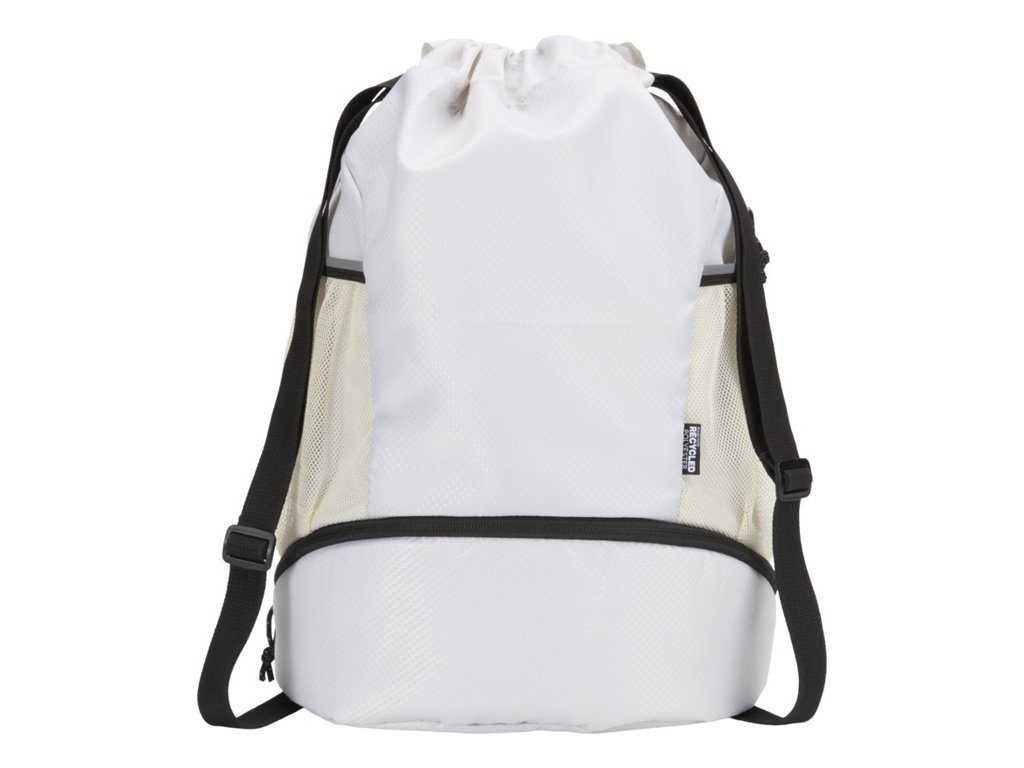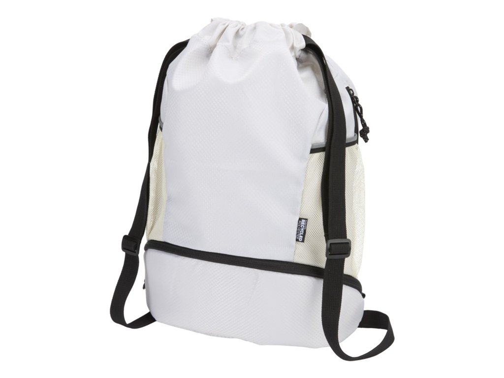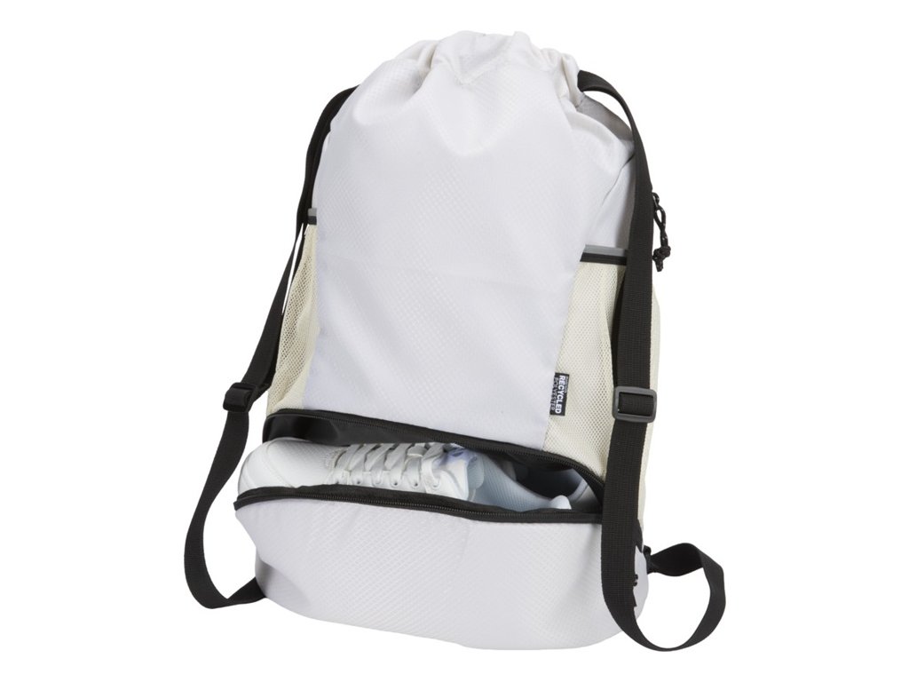 Športová taška so sťahovacou šnúrkou s vodoodpudivou úpravou. Priestranný hlavný oddiel, samostatná spodná priehradka na topánky, dve bočné sieťované vrecká s reflexnými detailmi, skryté vrecko na zips a nastaviteľné ramenné popruhy.