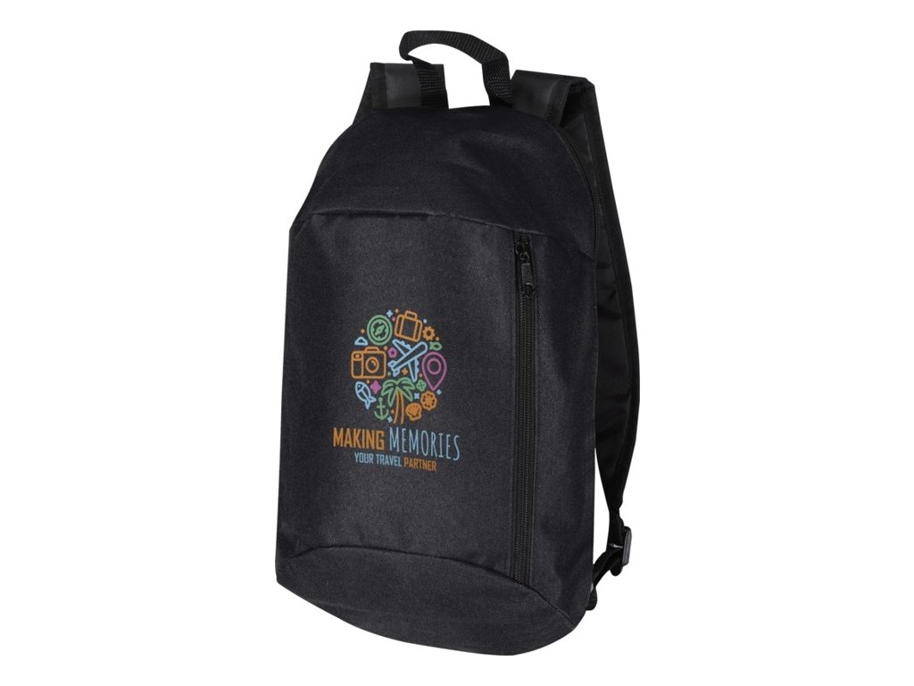 Tento malý, ale praktický batoh má predné vrecko na zips, hlavnú priehradku na zips a ľahké a nastaviteľné ramenné popruhy. Objemová kapacita: 7 litrov.