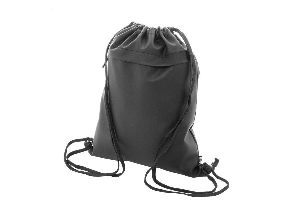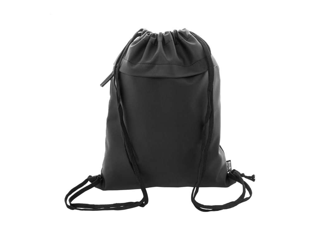 RPET vak so sťahovacou šnúrkou, s prednou stranou potiahnutou PU a predným vreckom na zips. Polyester 600D RPET potiahnutý PU s výrazným štítkom RPET.