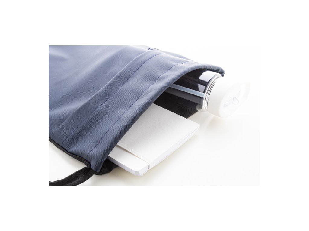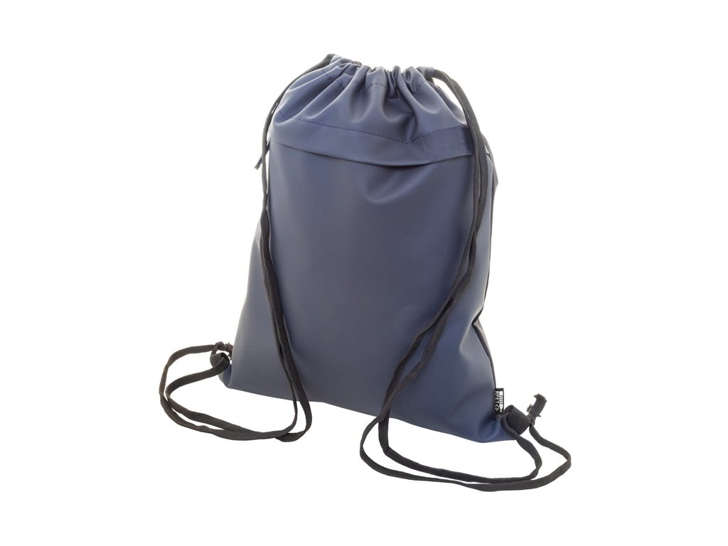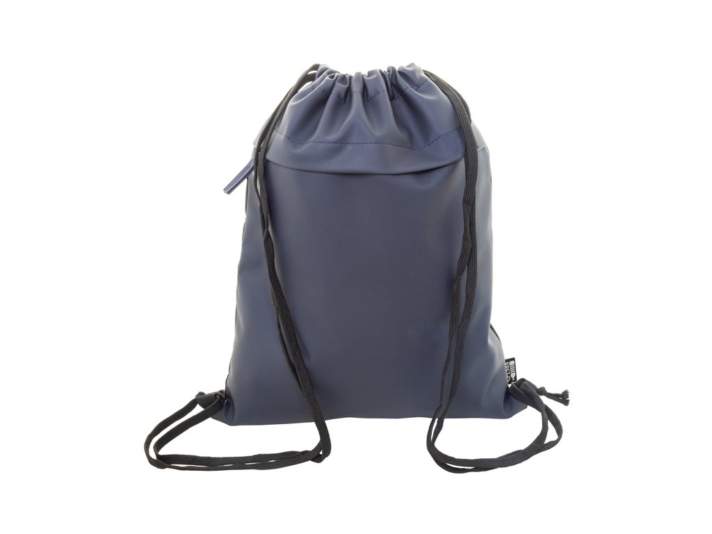 RPET vak so sťahovacou šnúrkou, s prednou stranou potiahnutou PU a predným vreckom na zips. Polyester 600D RPET potiahnutý PU s výrazným štítkom RPET.