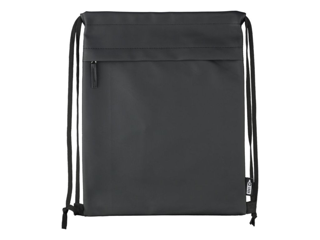 Polyesterové vrecko z rPET (600D) s vodeodolným PU záterom. Skryté predné vrecko na zips a priestranná priehradka so sťahovacou šnúrkou. Obsahuje 2 priehradky s predným a vnútorným vreckom. Objem 8 l, nosnosť 8 kg. Vrátane štítku rPET na vonkajšej strane.