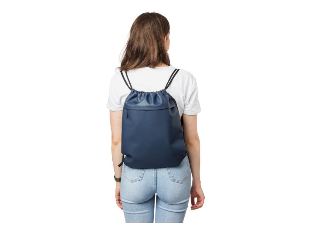 Polyesterové vrecko z rPET (600D) s vodeodolným PU záterom. Skryté predné vrecko na zips a priestranná priehradka so sťahovacou šnúrkou. Obsahuje 2 priehradky s predným a vnútorným vreckom. Objem 8 l, nosnosť 8 kg. Vrátane štítku rPET na vonkajšej strane.
