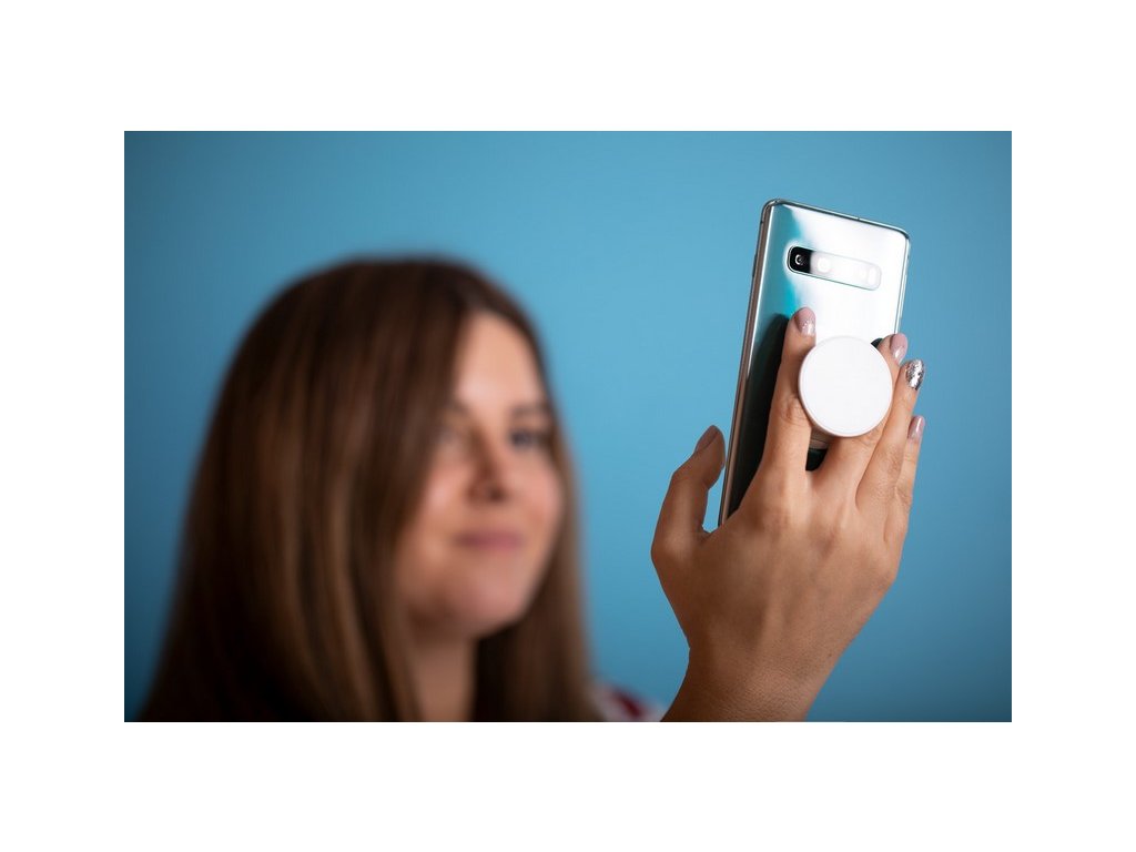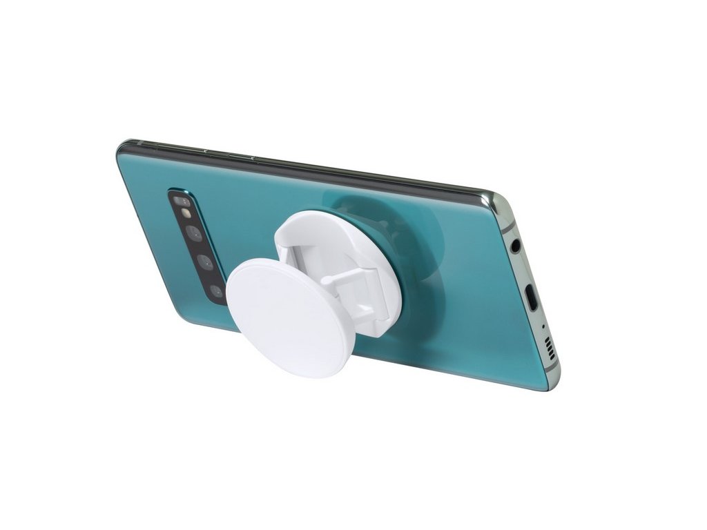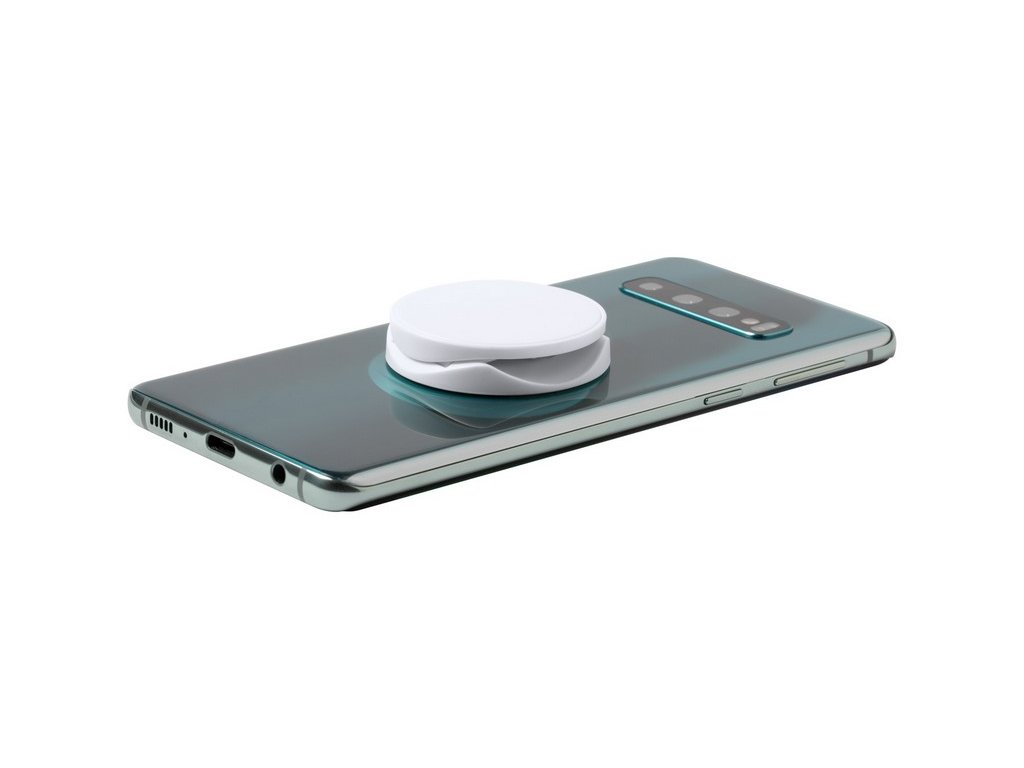 Okrúhly, plastový stojan na mobil s krúžkom na prst so samolepiacou stranou.