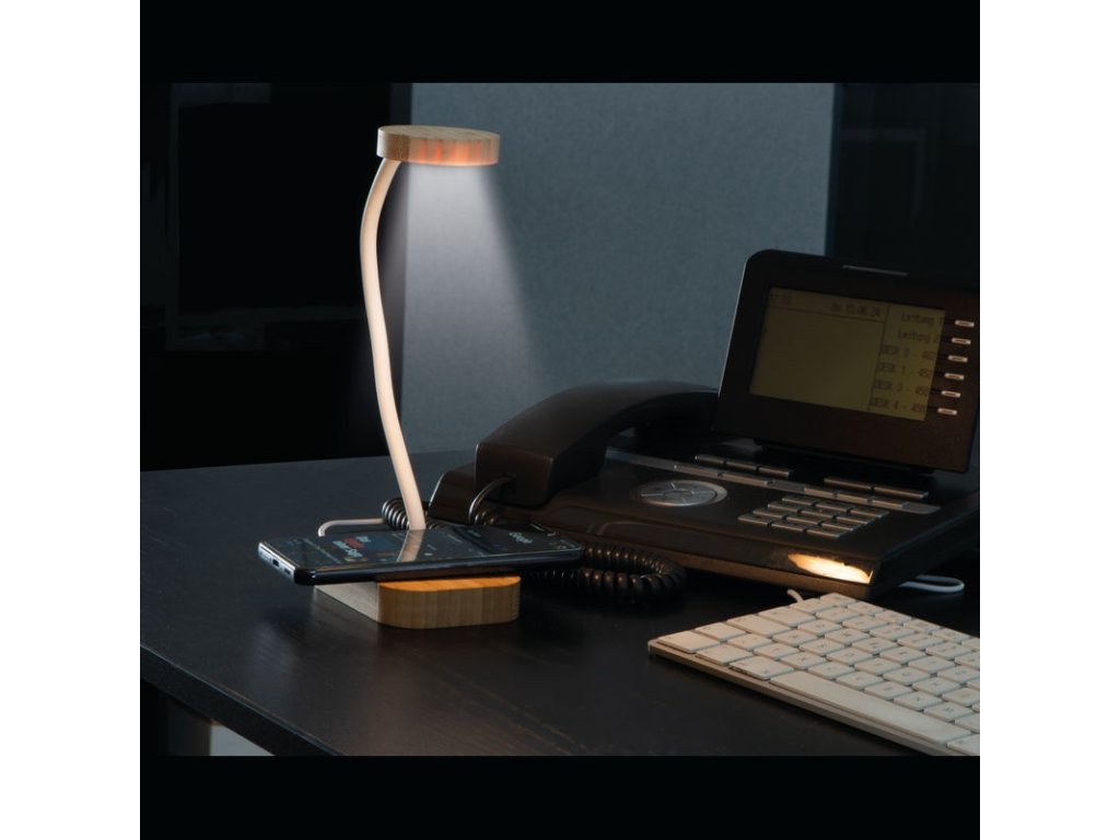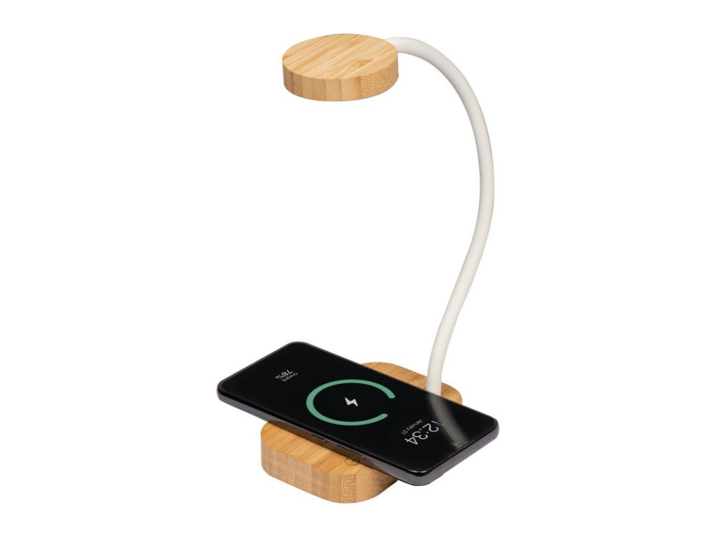 Všestranná lampa s indukčnou nabíjačkou vyrobená z bambusu. Lampa má tri rôzne režimy osvetlenia: teplé svetlo, studené svetlo a tlmené teplé svetlo. Indukčná nabíjačka integrovaná do bambusovej základne umožňuje jednoduché nabíjanie všetkých indukčne kom