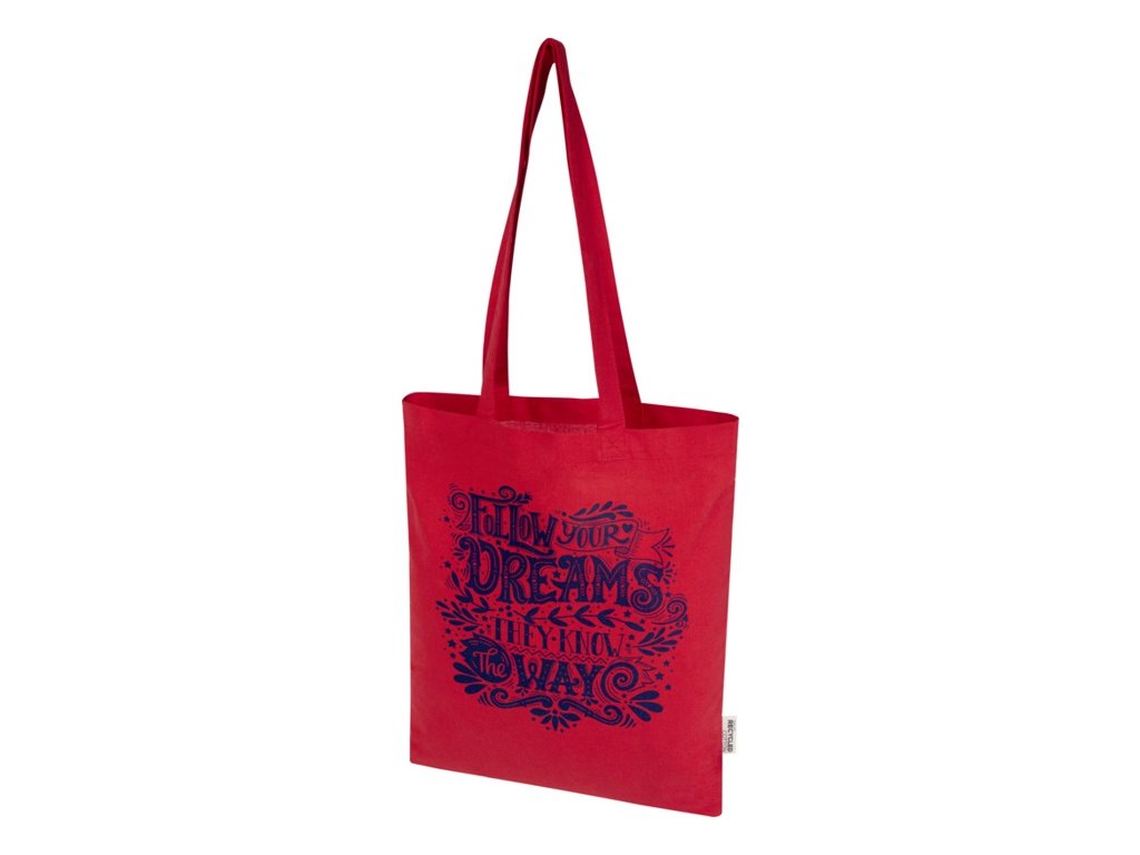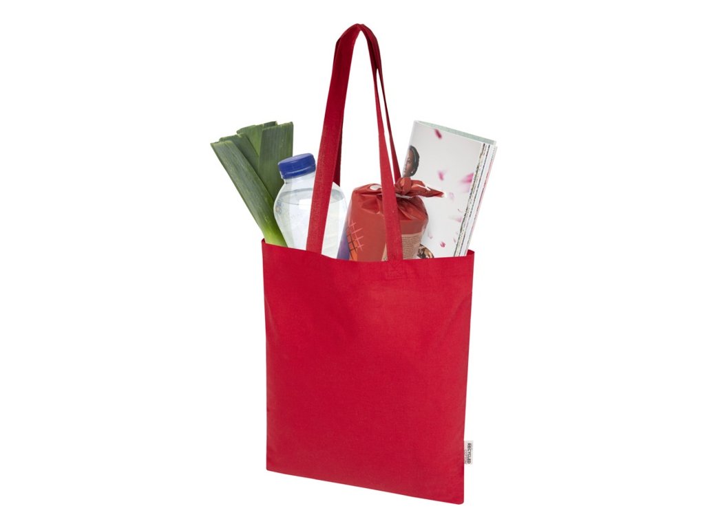 Nákupná taška zo 60% z recyklovanej bavlny GRS a zo 40% z GRS RPET. Vďaka hustote bavlny 140 g/m2 je taška pevná s má dlhú životnosť . Vďaka 30cm uchom cez rameno sa táto taška dobre nosí. Vyrobené v Indii. Nosnosť do 5 kg. Objem: 7 litrov.