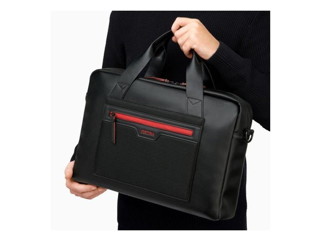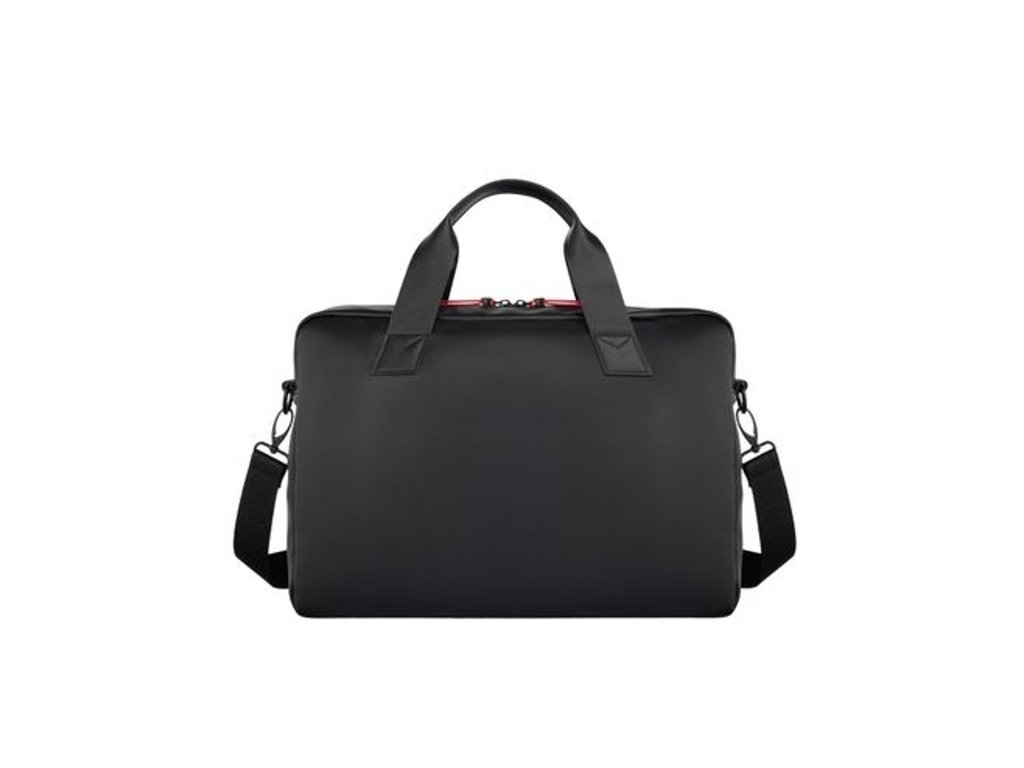 Taška z kolekcie Black Edition kombinuje elegantný dizajn, funkčnosť a praktickosť. Vyrobené z matnej čiernej vegánskej kože s inovatívnymi sieťovými akcentmi. Taška má prednú priehradku na zips, vyhradenú priehradku na notebook a ďalšie vrecko na zips.