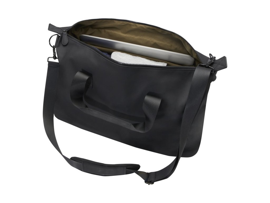 Taška má vyhradenú polstrovanú priehradku na 15,6? notebook, pútko na fľašu s vodou a vrecko na zips na menšie predmety. Popruh na kufor. Tašku je možné nosiť za 2 krátke uši alebo za roztiahnuteľný a odnímateľný ramenný popruh. Objem: 36 litrov.