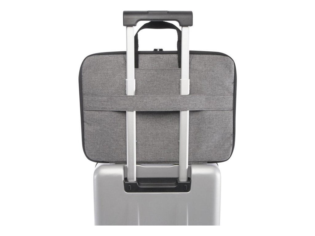 Puzdro na notebook Libra 2v1 z RPET GRS a má hlavnú priehradku na zips, ktorú je možné otvoriť o 180 stupňov pre uľahčenie bezpečnostných kontrol. Neoprénové vrecko na notebook, 2 sieťované vrecká, predné vrecko na zips, popruh na kufor.