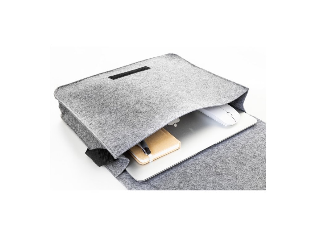 RPET plstená taška na notebook s nastaviteľným ramenným popruhom. Vhodné pre notebooky do 15". S výrazným štítkom RPET.