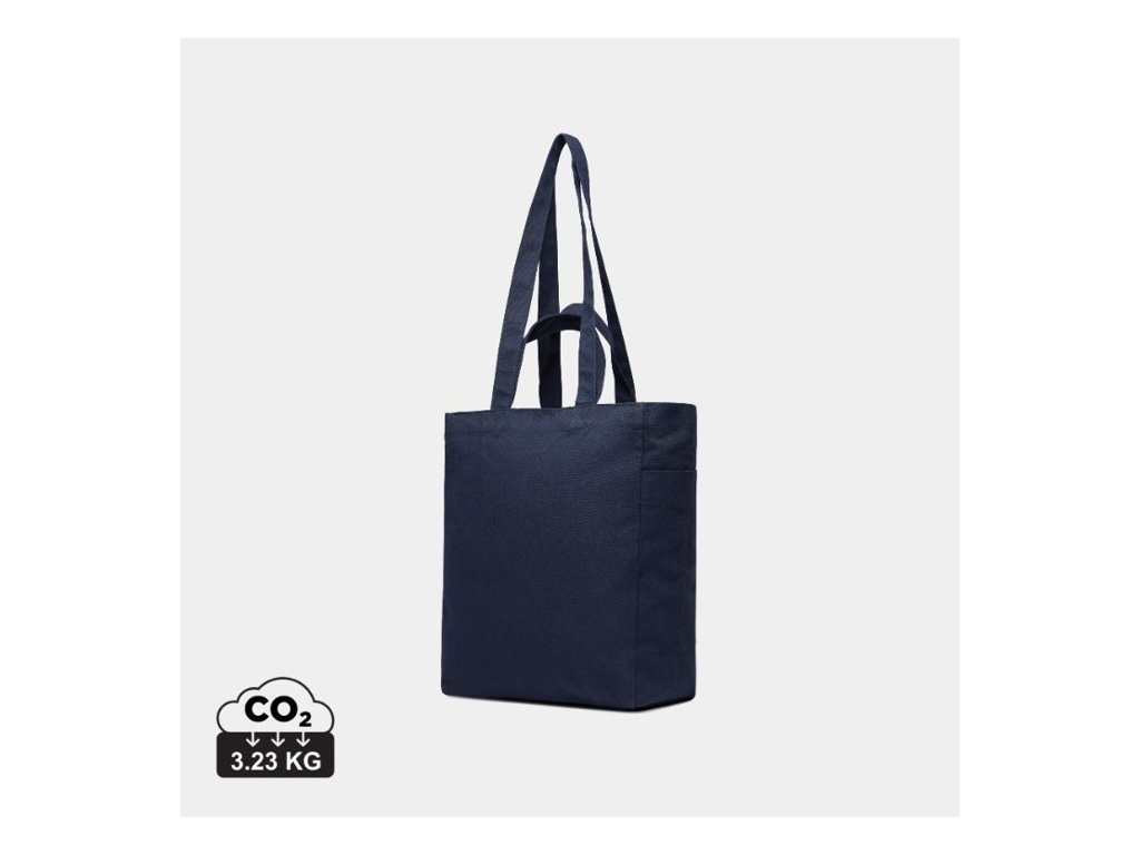 Kratšie uši na nosenie v ruke, dlhšie uši na nosenie na ramene. Dve otvorené vonkajšie vrecká. Vyrobené z recyklovaného nefarbeného plátna (canvas) bez použitia bielidiel a chemikálií. Zloženie: 70% recyklovaná bavlna, 30% recyklovaný polyester. AWARE™